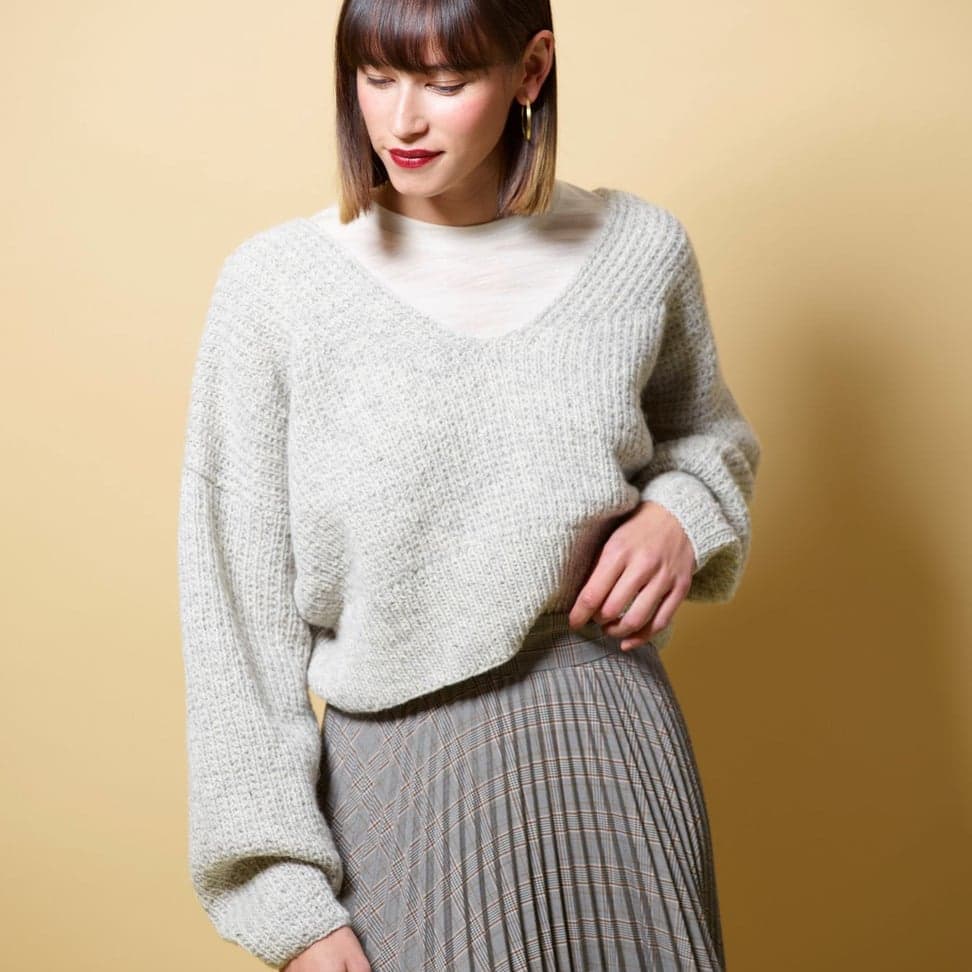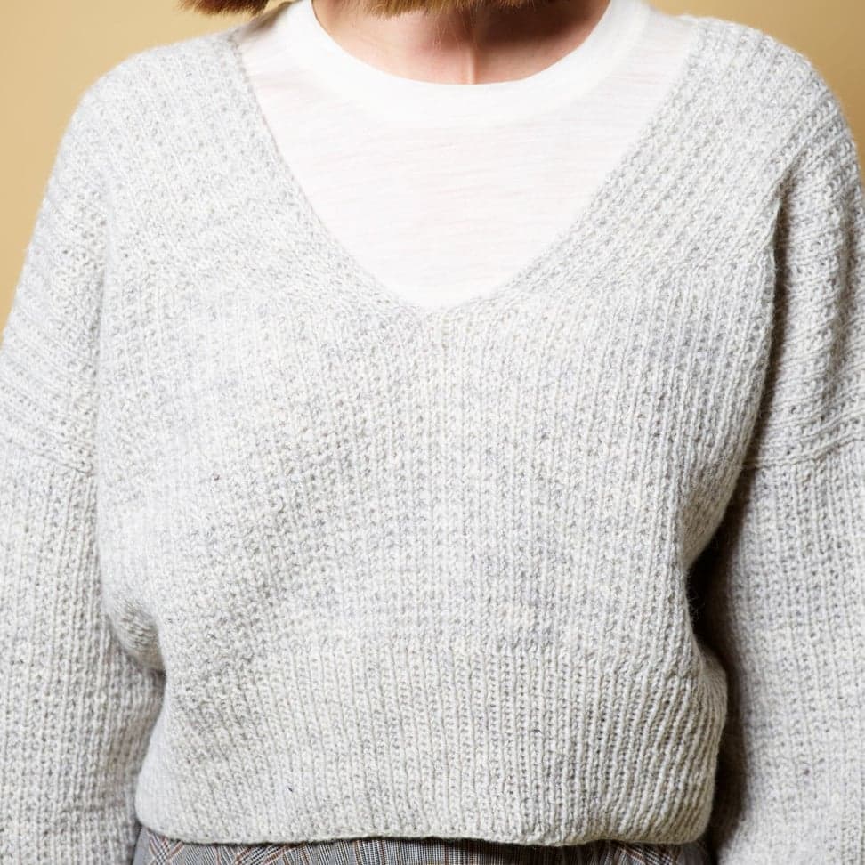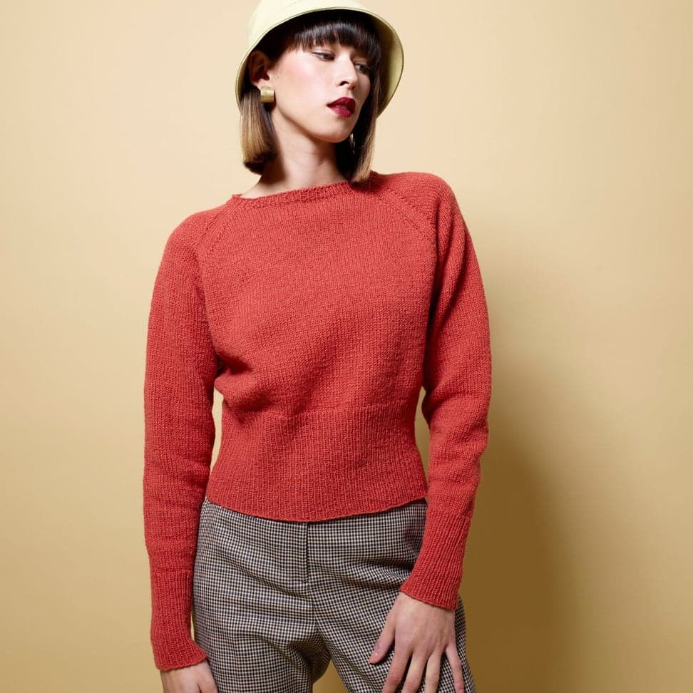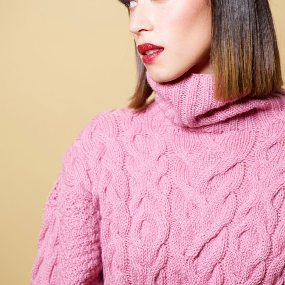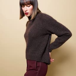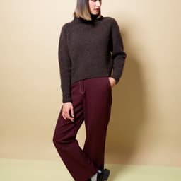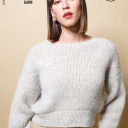 Siragenser er en tjukk genser, med høy hals og ekstra lengde bak. Den er strikket ovenfra og ned med dobbel tråd: én tråd 3-tråds Strikkegarn og én tråd Plum.