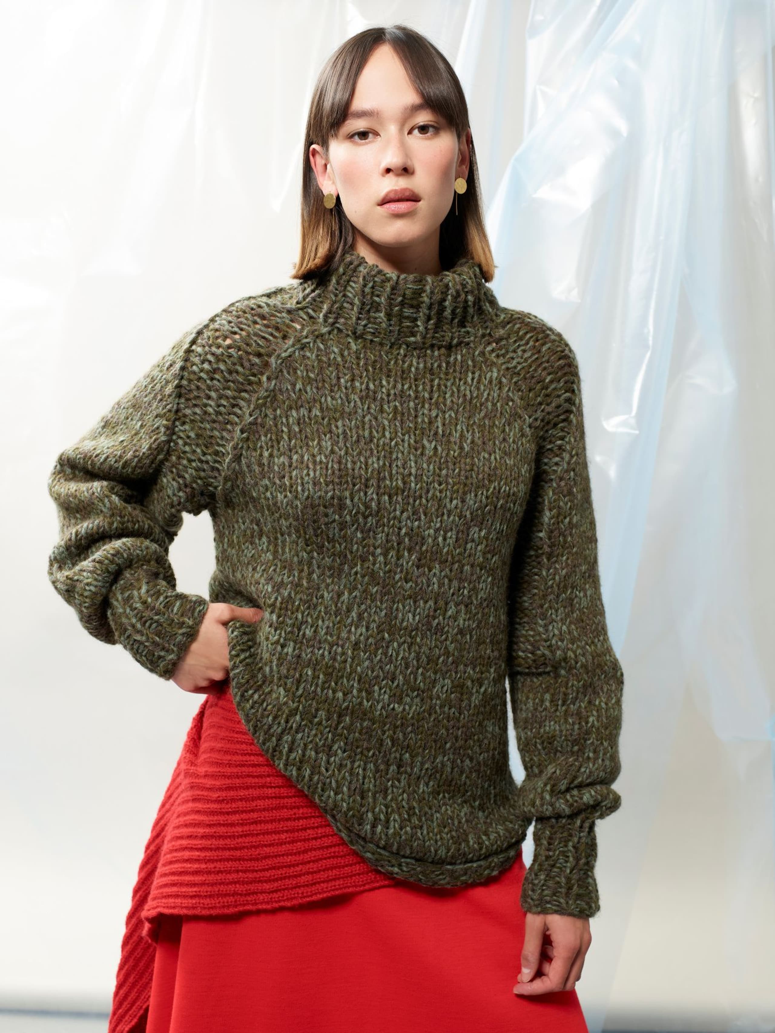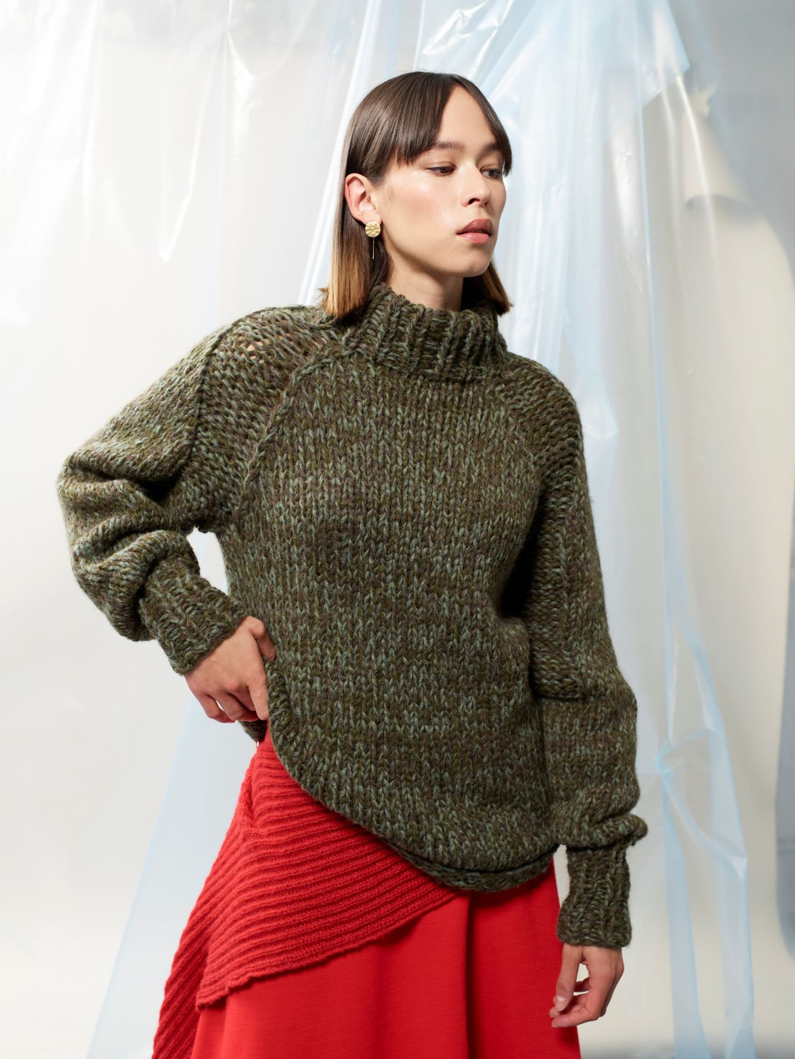 Puno Petit er utgående. Denne genseren er strikket i trippel tråd, noe som gir en flott melert effekt og mange variasjonsmuligheter. Genseren har raglanfelling med en fin detalj av vrangmasker. Halsen er høy og brettet dobbel mot vrangen. En skikkelig deilig høstgenser!