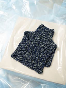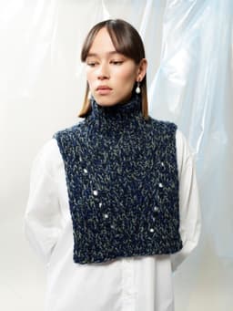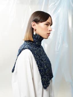 Puno Petit er utgående. Halsen strikkes ovenfra og ned i ribbestrikk med trippel tråd. Som dekorativt element skrår ribbestrikken innover mot midten og det dannes et hullmønster på for- og bakstykket. Halsen har skrå skuldre som formes ved å strikke forkortede pinner på bakstykket. Den er lengre foran enn bak. Om du ønsker å strikke den lengre, vil du behøve mer garn da det går med akkurat ett nøste av hver farge.