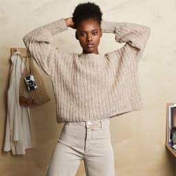 Erles kosegenser er en vid og kort modell med rund hals og vide ermer. Den strikkes nedenfra og opp i ribbestrikk. Masker til ermene strikkes opp langs ermehullet og ermene strikkes «nedover». Ermene har lange mansjetter som er fine både med og uten oppbrett. Alpakka Lin har lite spenst og «spretter» ikke tilbake i fasong slik mange garnkvaliteter gjør. Vær derfor forberedt på at plagget kan utvide seg noe – spesielt om det er strikket løst, og ta dette med i beregningen når du velger størrelse. Vær nøye med å ikke få for løs strikkefasthet. Damp gjerne prøvelappen din før du måler.