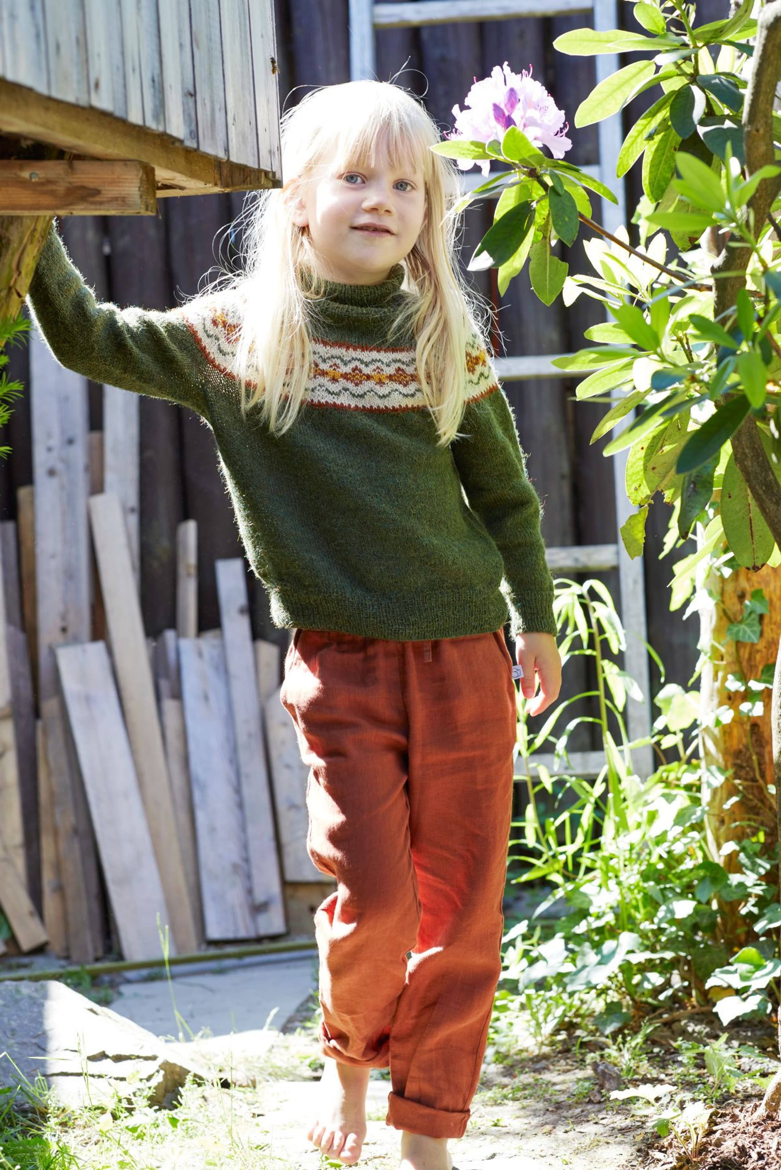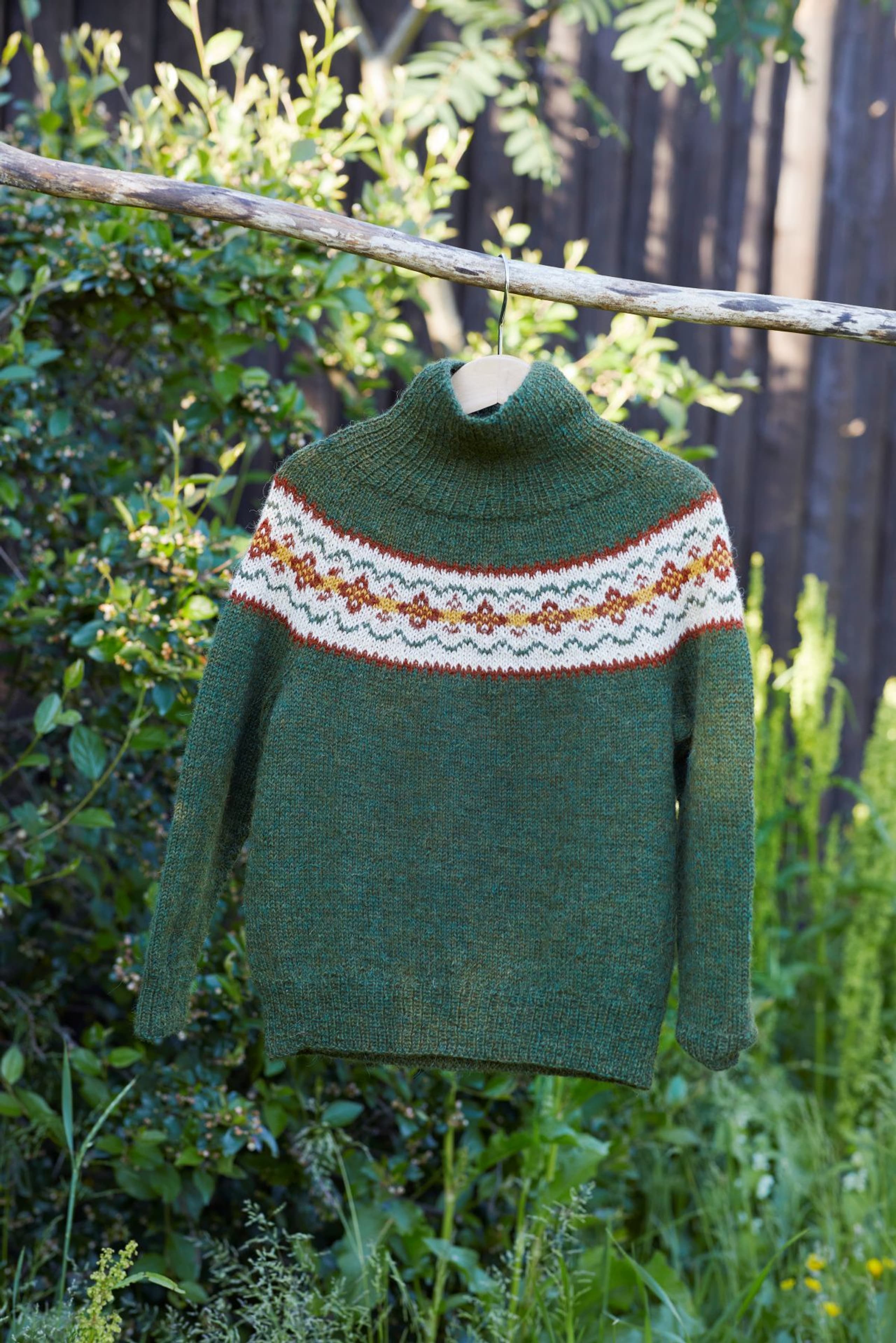 Genseren strikkes ovenfra og ned. Den har rundt bærestykke hvor økningene gjøres jevnt fordelt på fem omganger. Genseren kan strikkes med kort eller lang hals.