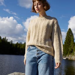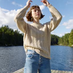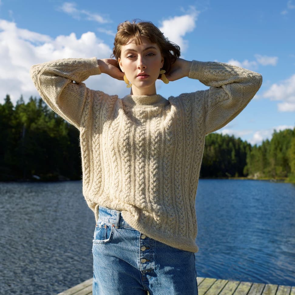 Allygenseren er en flettegenser med isydde ermer. Genseren er lang og oversized og har en bred ribbestrikket dobbel halskant. Den strikkes nedenfra og opp. Bevegelsesvidden i str M er 14 cm.