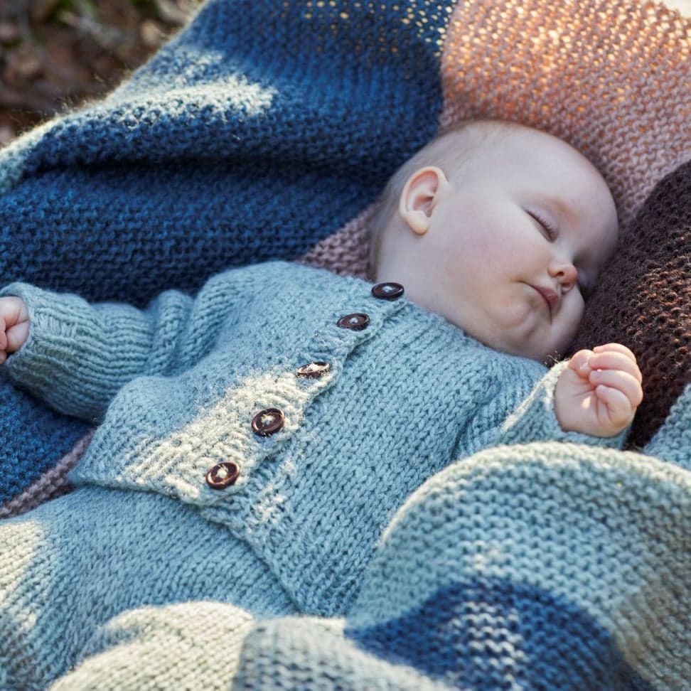 Kokopleddet er et stort rillestrikket pledd med brede striper i fire farger.