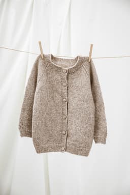Puno Petit er utgående. Enkel glattstrikket jakke med raglanfelling. Jakken strikkes frem og tilbake, nedenfra og opp. Forkanter og halskant strikkes opp til slutt. Lukket jakke har en tenkt bevegelsesvidde på 11 cm.
