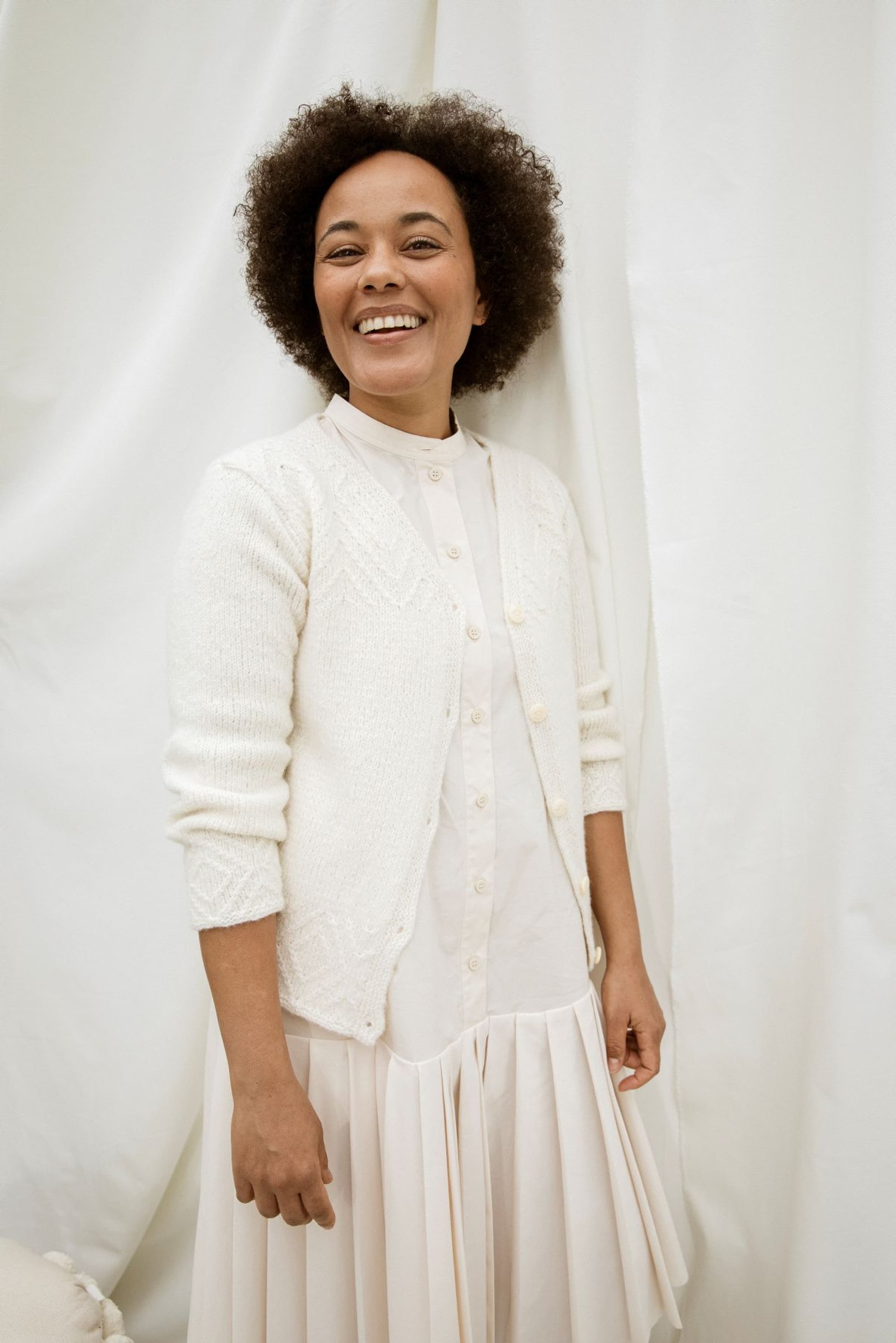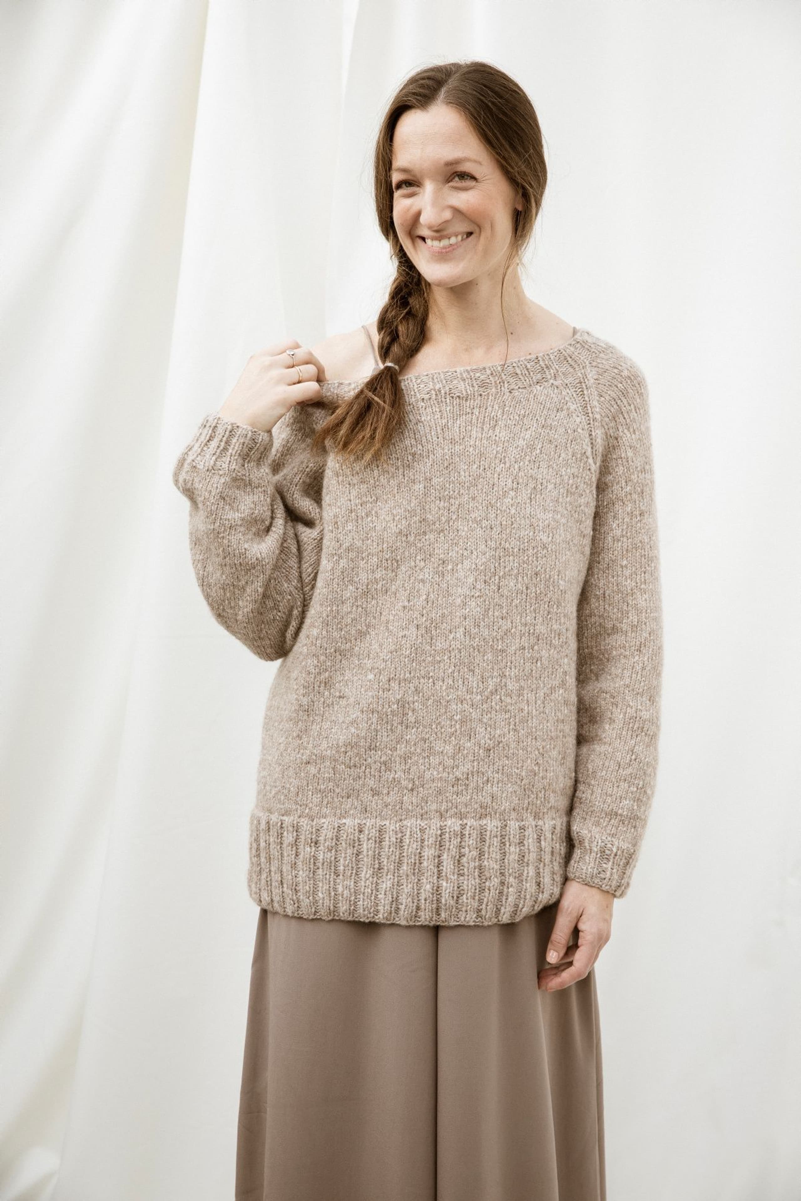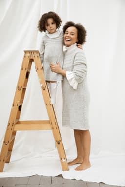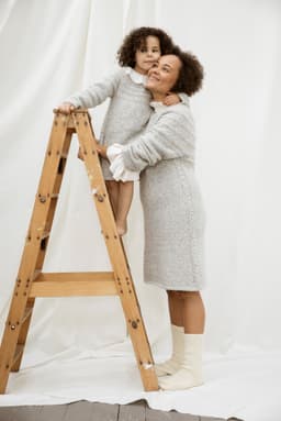 Puno Petit er utgående. Kjole med rundt bærestykke. Kjolen strikkes rundt ovenfra og ned i struktur samtidig som det økes jevnt rundt på bærestykket. I høyde med ermehullene deles arbeidet i tre deler for bolen og ermer og delene strikkes rundt hver for seg. I halskanten og nederst på kjolen og på ermene strikkes det inn en tråd Metallic. Nederst på ermene lages en hempe med knapp og i hver side av kjolen strikkes en flette. Kjolen har en tenkt bevegelsesvidde på 9 cm.