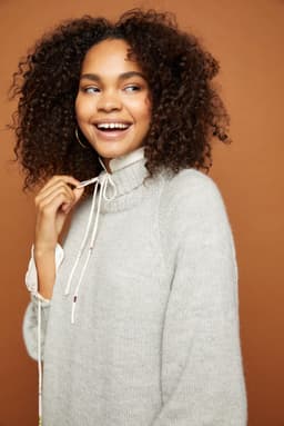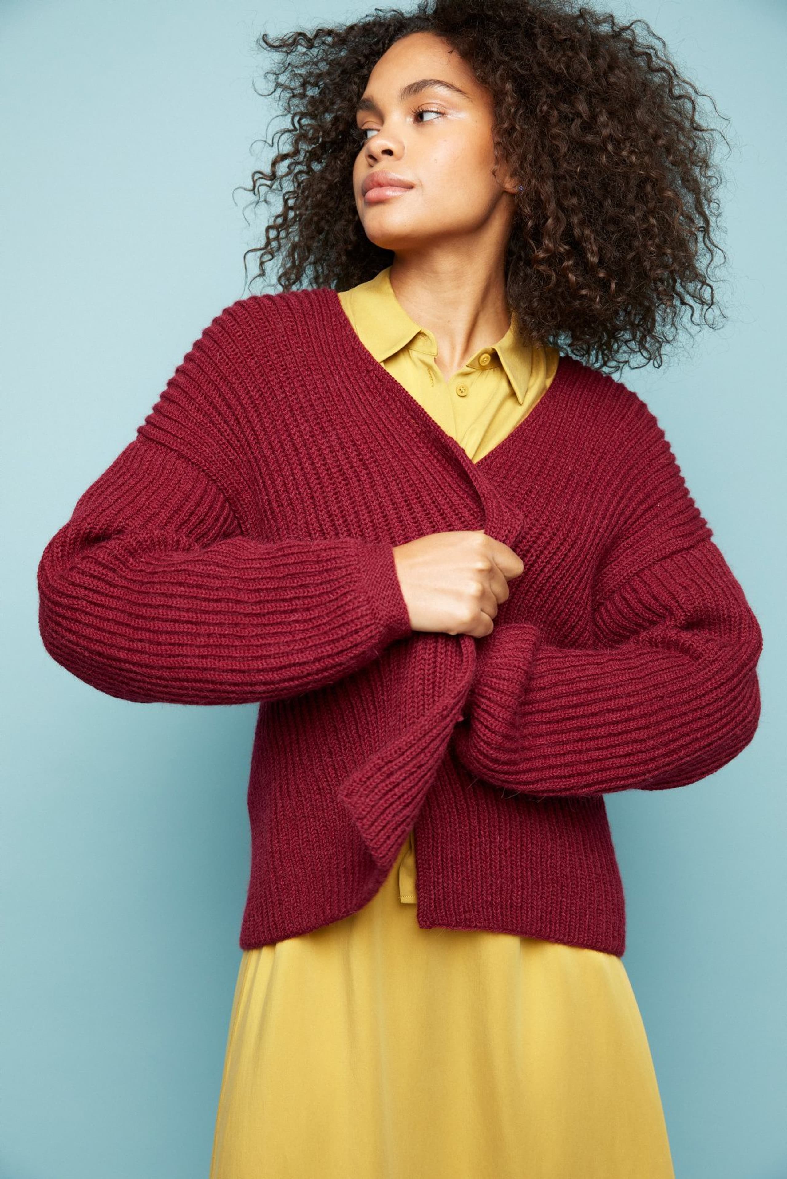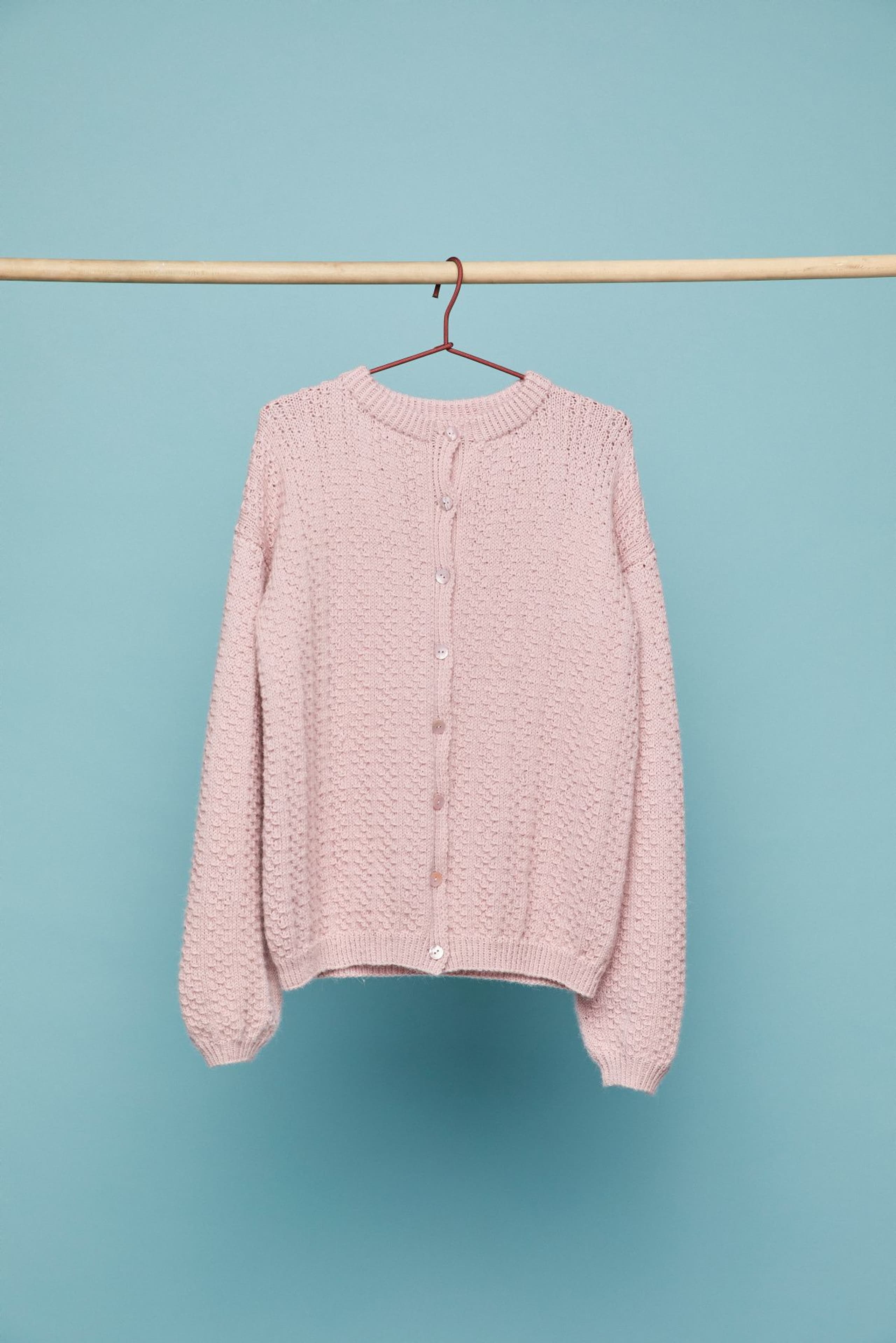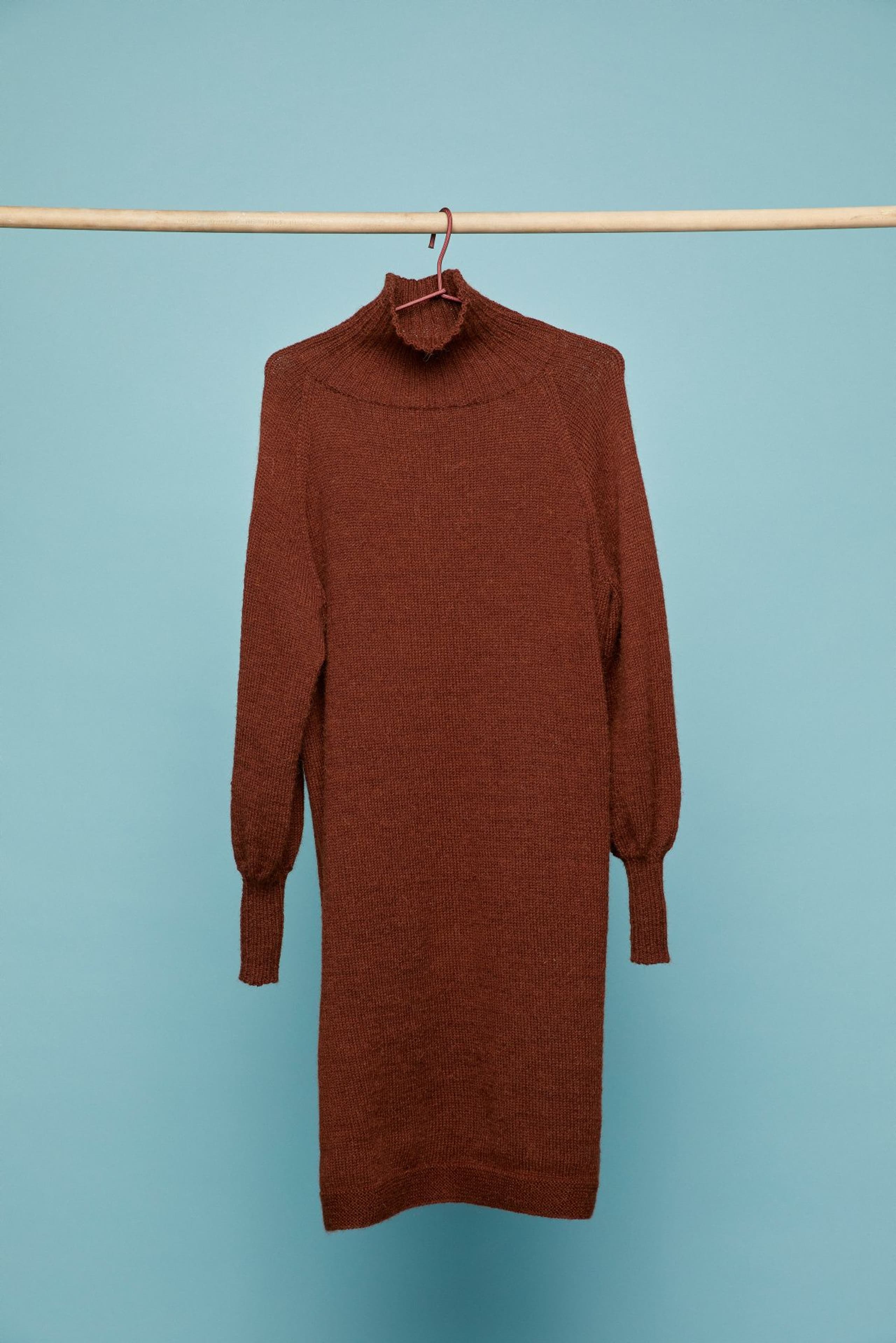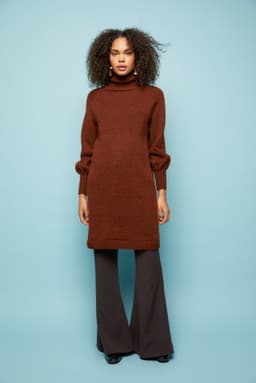 Myha er en helt enkelt kjole strikket nedenfra og opp. Den er glattstrikket med raglanfelling og er avsluttet med en høy ribbestrikket hals. Bevegelsesvidden er tenkt ca 17 cm.