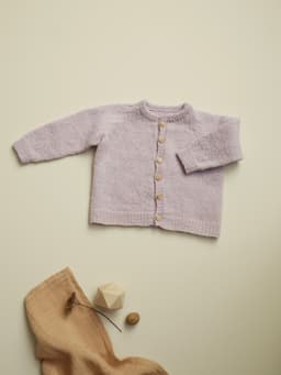 Fink er en glattstrikket jakke, med en vri over den klassiske raglanfellingen. Jakka er strikket fram og tilbake med vrangbordkanter.