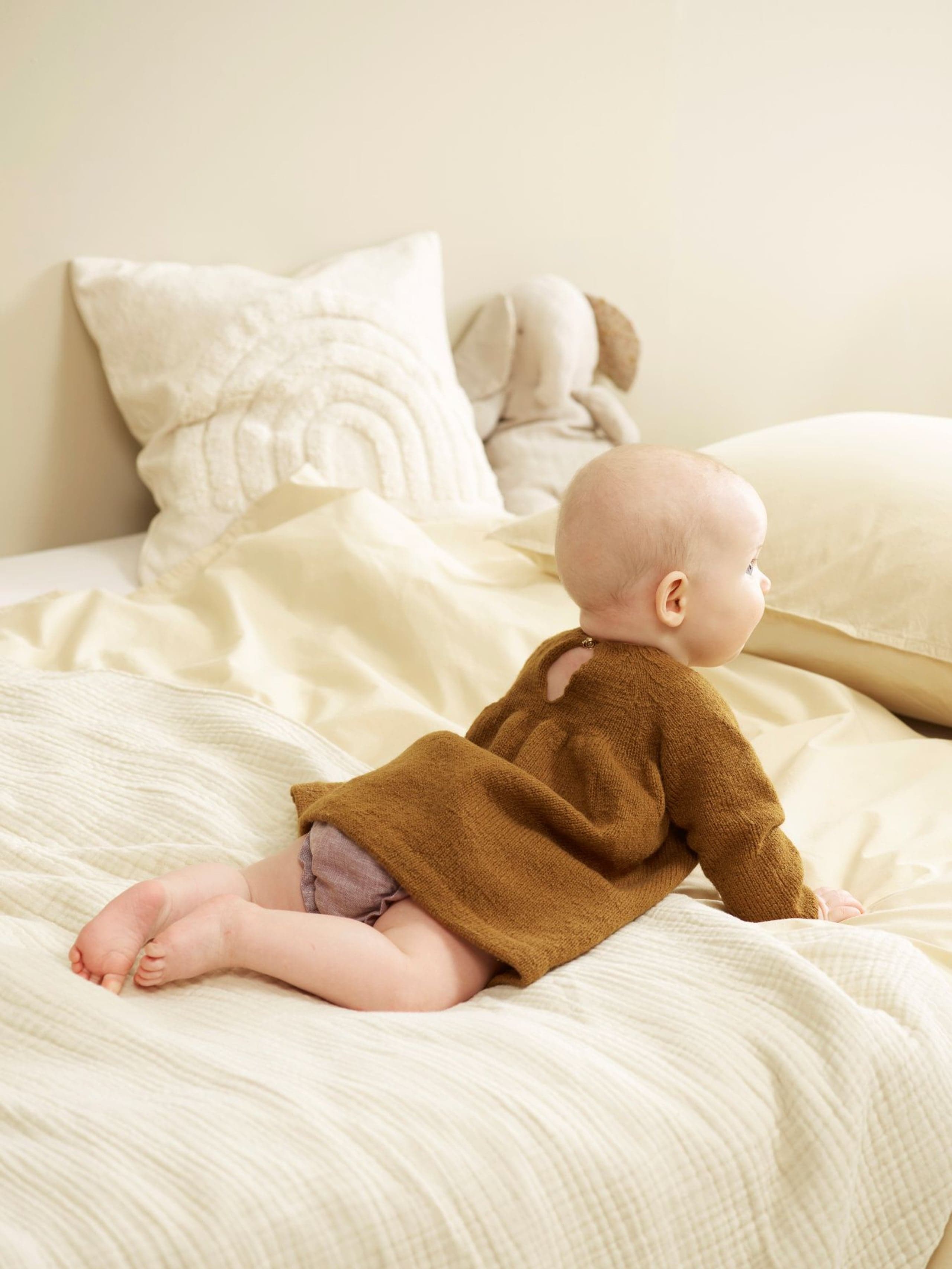 Sule er en glattstrikket kjole, med mye vidde i skjørtet. Kjolen er strikket nedenfra og opp, med en vri over raglanfellingene. For kjolen skal være lett å ta av og på har den en splitt i nakken.