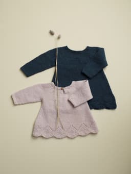 Sisik er en søt liten kjole til de små jentene. Den strikkes nedenfra og opp med en blondekant nederst på skjørtet. Skjørtet skrår forsiktig inn. Ermene og skjørtet strikkes sammen med rundfelling. Det siste stykket strikkes fram og tilbake slik at det blir en splitt bak i nakken, som lukkes med en knapp, så den blir lettere å ta av og på.