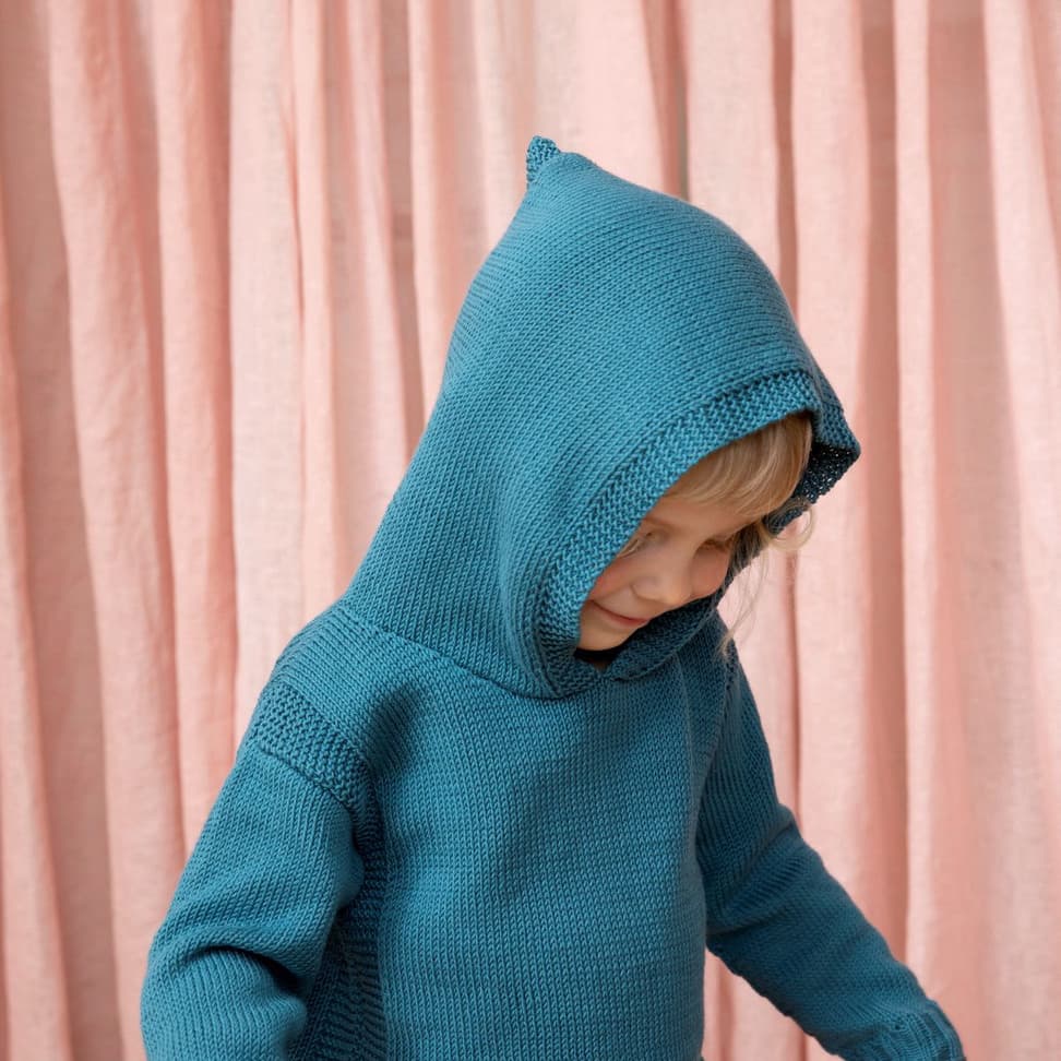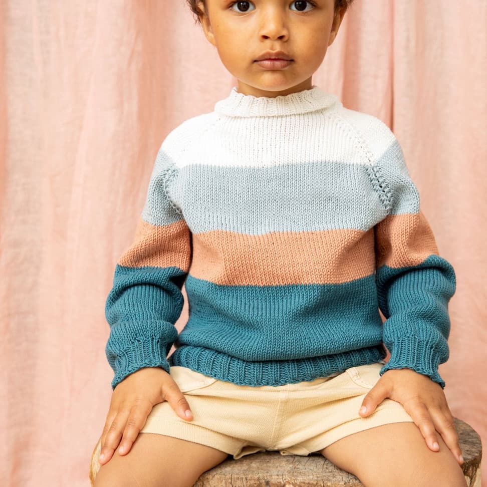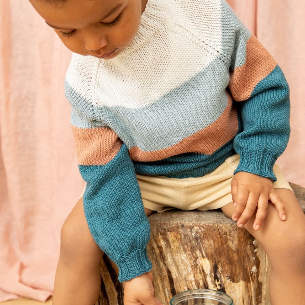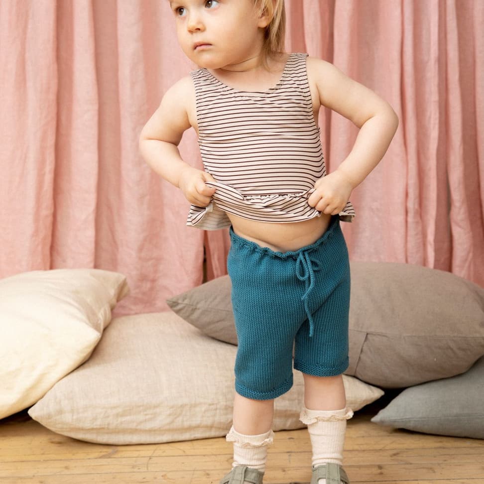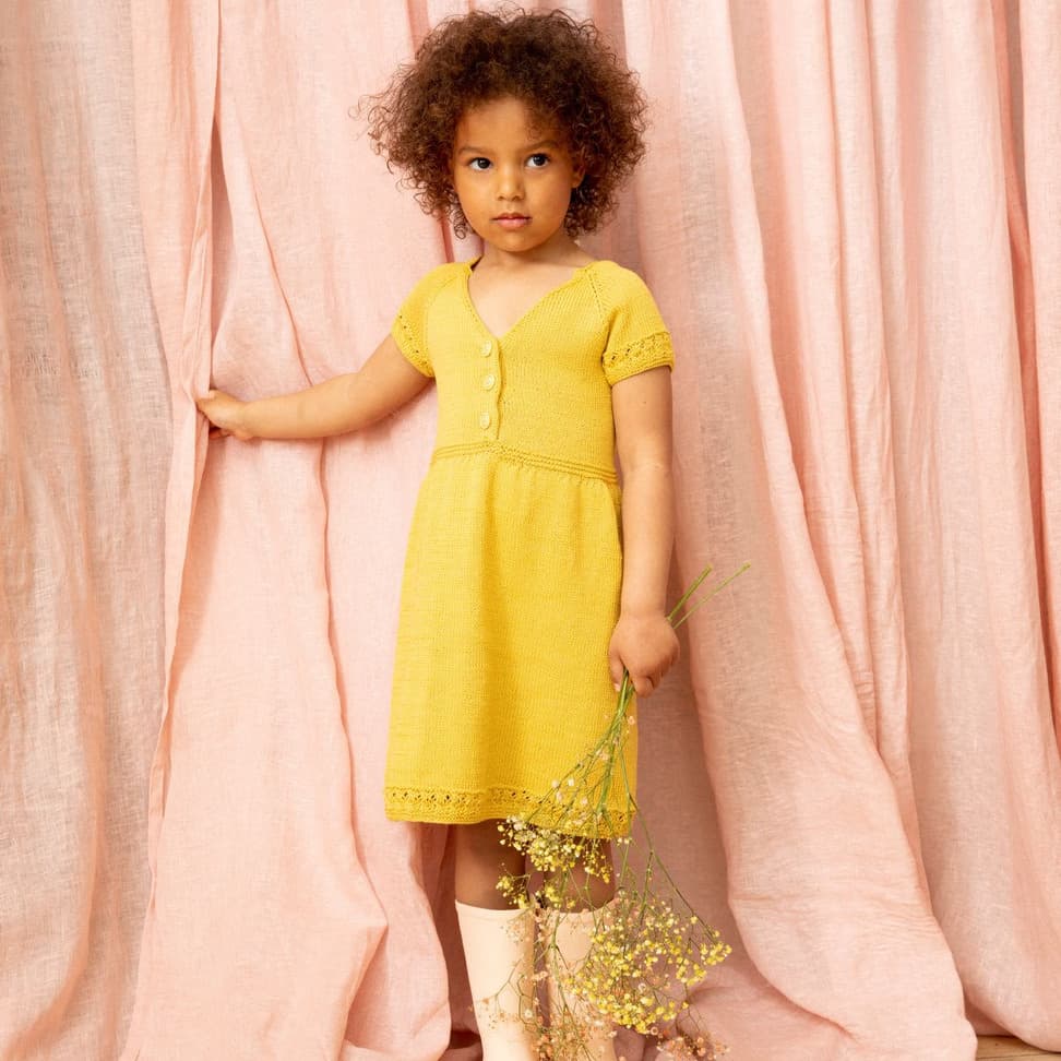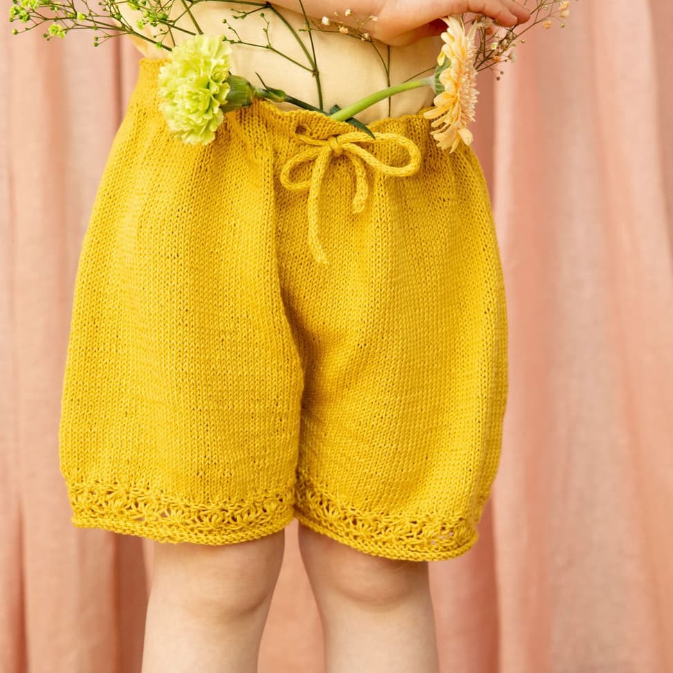 Skjørtet strikkes ovenfra og ned med riller i livet og glattstrikk videre. Skjørtet kan enkelt strikkes lengre eller kortere. Det har en strikket snor til knytting i livet.