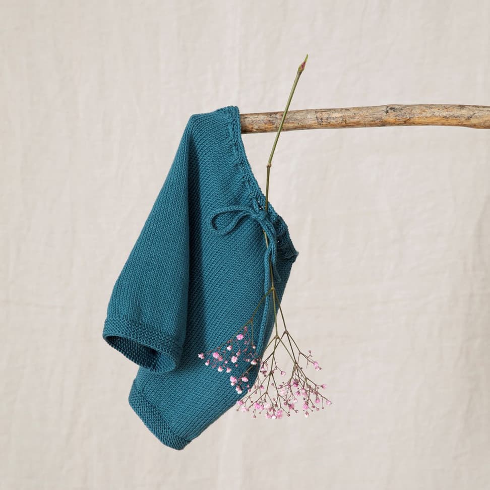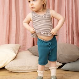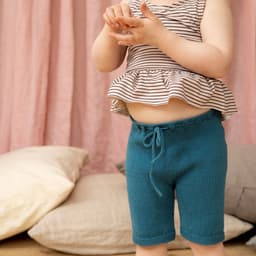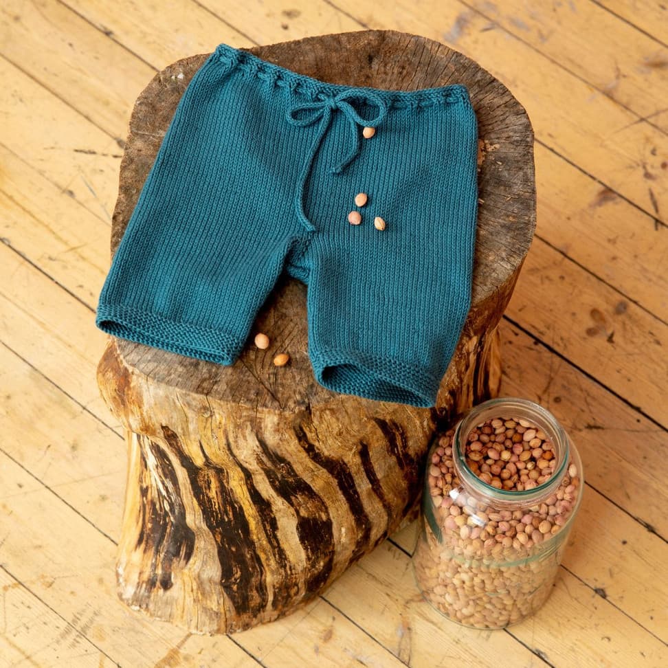 Skippershortsen er enkel glattstrikket med rillekant nederst på hvert ben. Den er strikket høyere bak og har en hullbord i livet til en strikket knyttsnor. Den er strikket rundt ovenfra og ned, det er derfor lett å regulere benlengder.