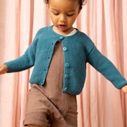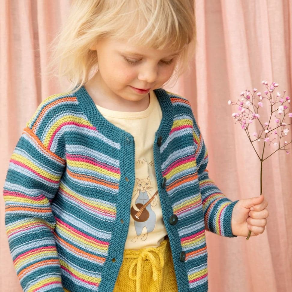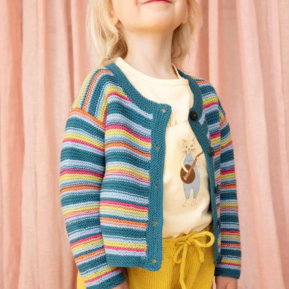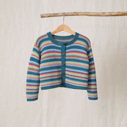 Kort, enkel jakke i rillestrikk som strikkes frem og tilbake nedenfra og opp. Den kan strikkes ensfarget eller med stripe- mønster. Diagrammet på stripemønsteret kan du lett lage ditt eget utrykk på, ved å flytte på fargene og endre antall omganger på stripene. Retten og vrangen får litt ulikt utrykk, velg derfor hvilke side som skal vende ut før montering og før hals- og forkanter strikkes på. Ermene strikkes for seg og sys i ermehullene etter skuldrene er sydd sammen. Lukket jakke har en tenkt bevegelsesvidde på 8 cm.