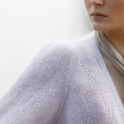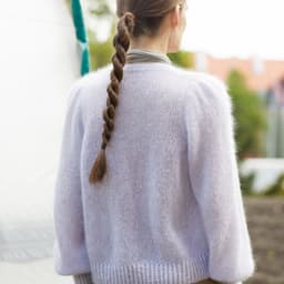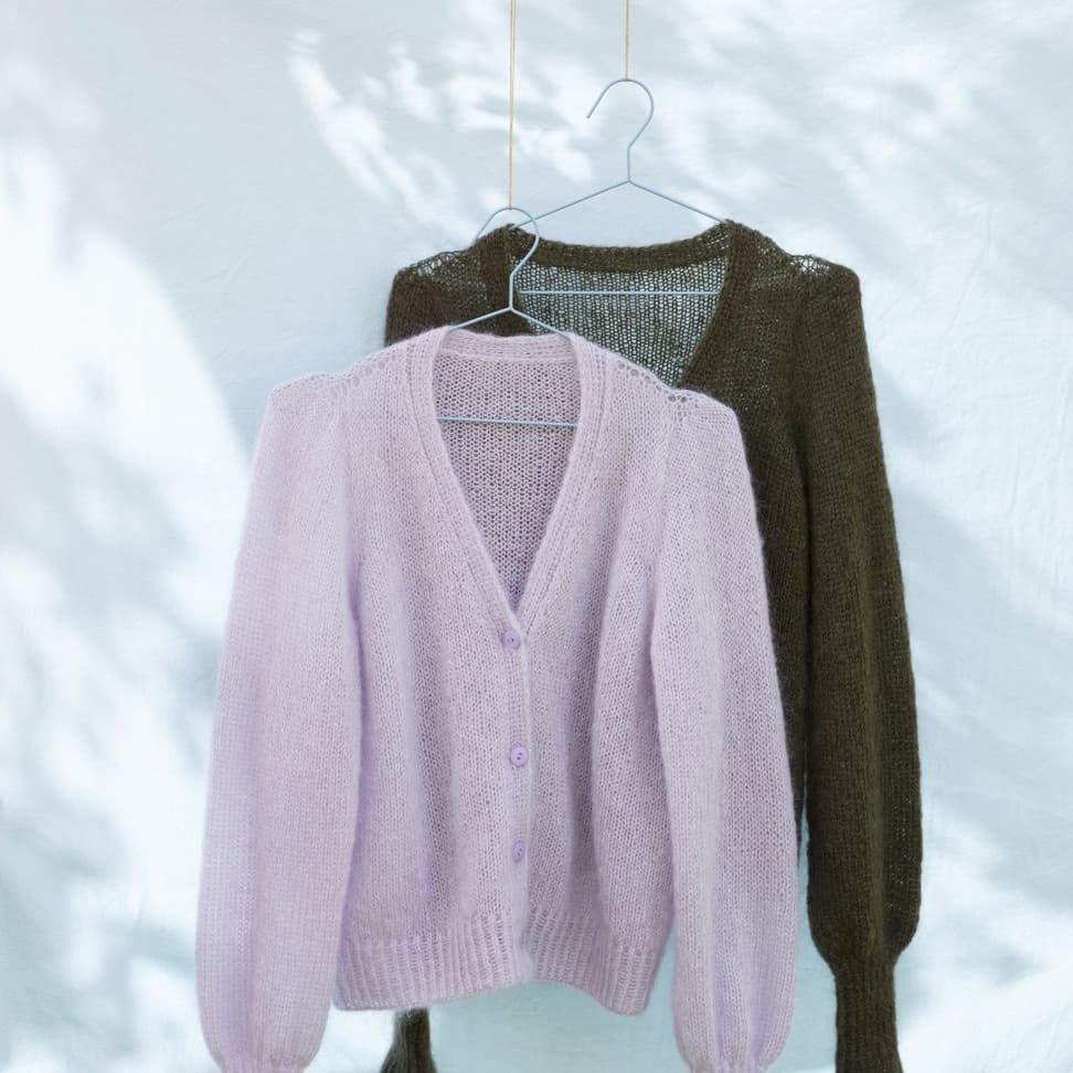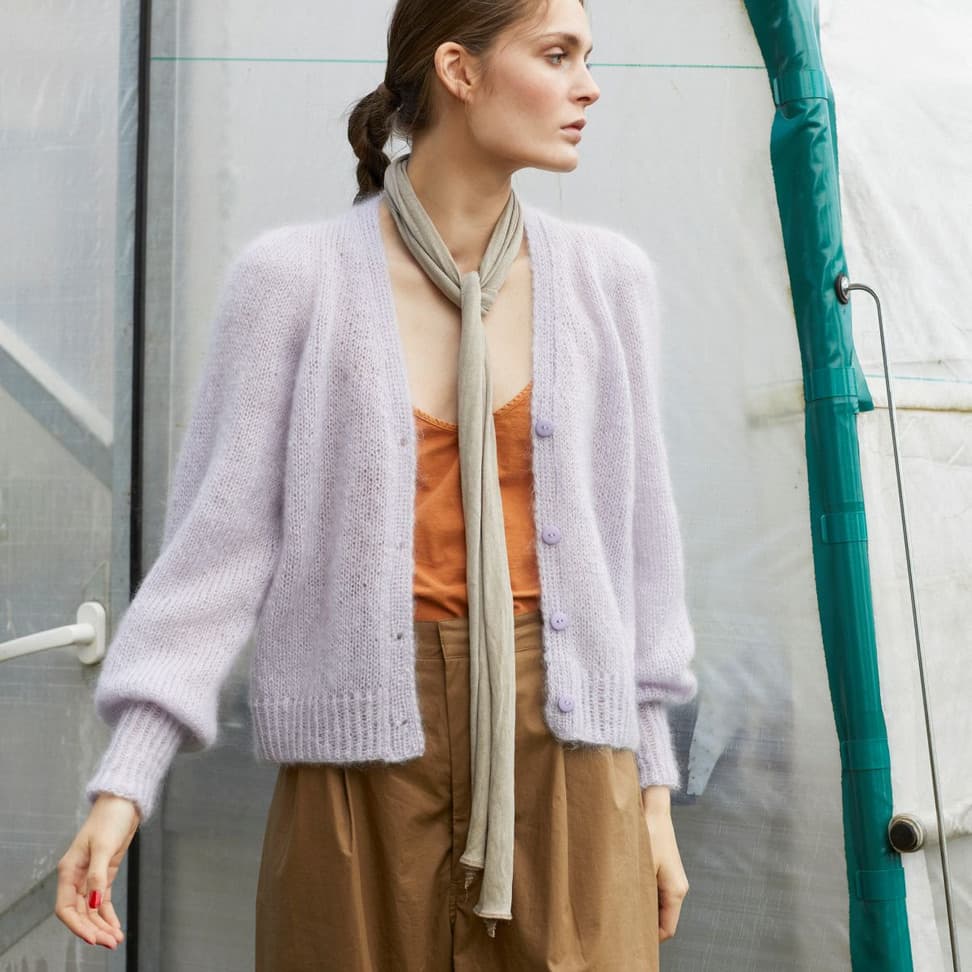 Lilje hverdagsjakke er en delikat og allsidig jakke med v-hals, en anelse pufferme og lange mansjetter. Den strikkes ovenfra og ned, frem og tilbake. Til slutt strikker man opp m langs forkanter og nakke, og disse m strikkes så sammen med stolpe-m, 1 m hver p til man har strikket stolpe rundt hele kanten. Jakken har en ledig passform med ca 15 cm bevegelsesvidde.
