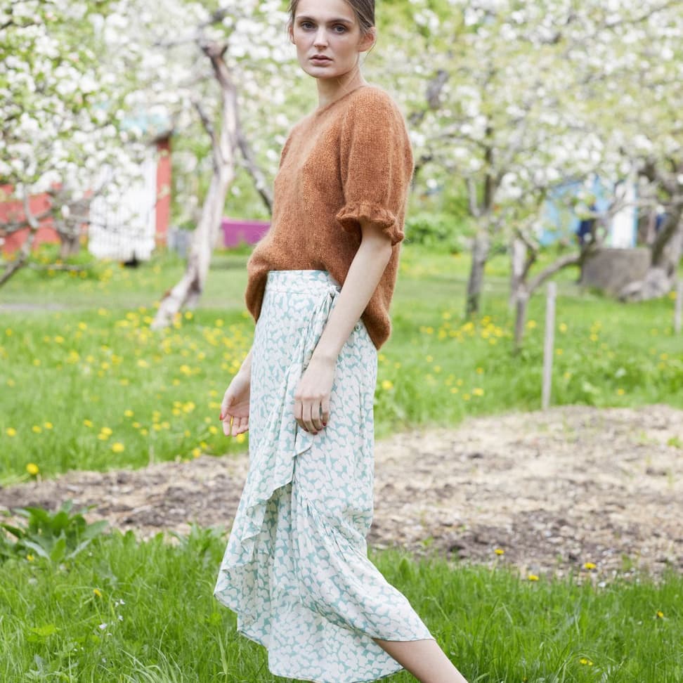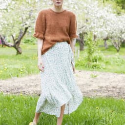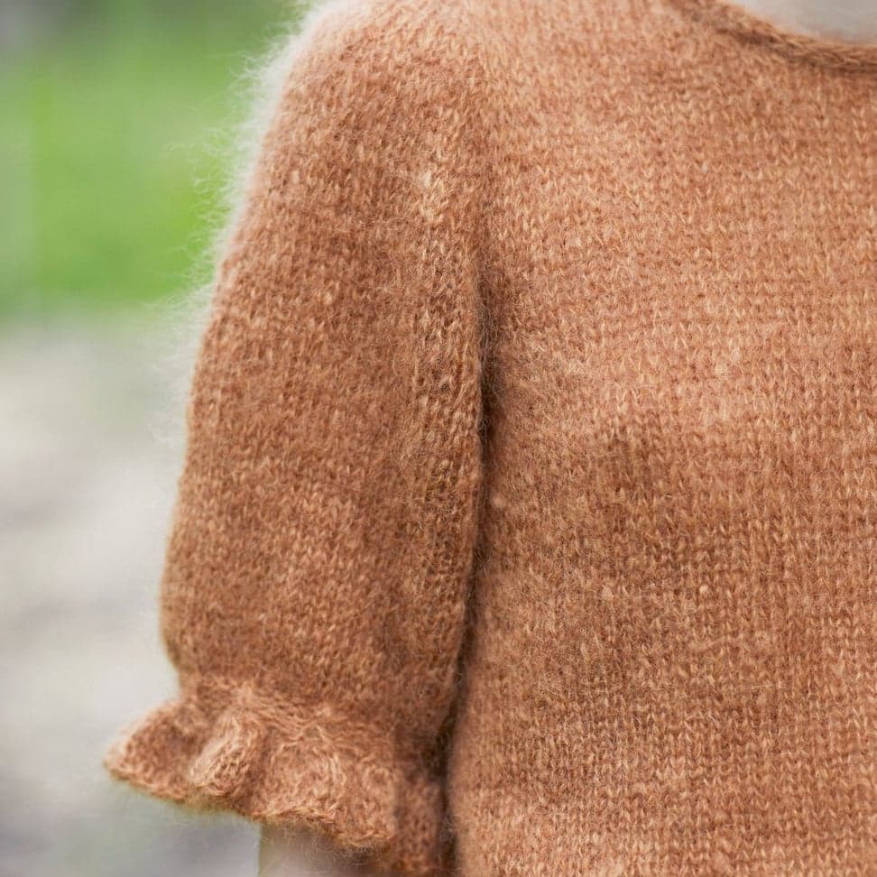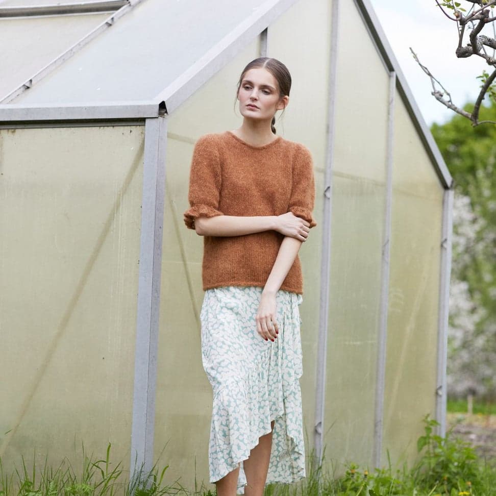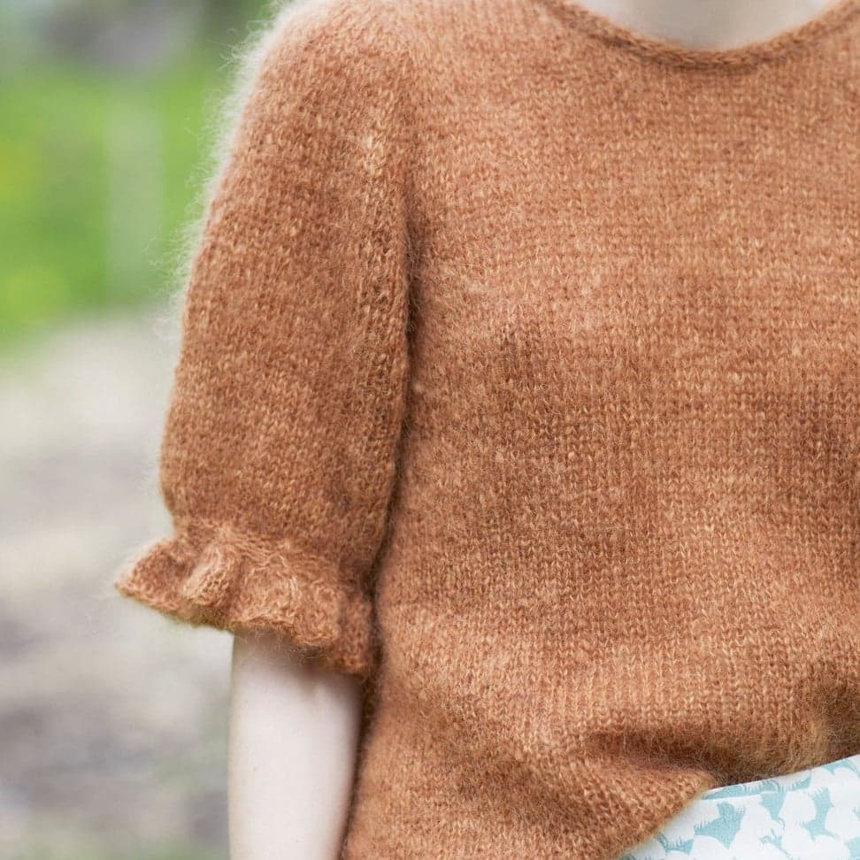 Engklokke-toppen har korte ermer med en anelse puff og en nydelig klokke-mønstret rysjekant. Den strikkes ovenfra og ned, uten montering. Først økes m til skuldrene samtidig som utringningen formes med forkortede p/vendepinner. Så økes det til ermetopp, før man fortsetter med ermeøkninger. Videre økes til både bol og ermer før arbeidet deles. Halskanten og nederkanten på bolen avsluttes med en i-cord-avfelling. Toppen er nokså romslig med ca 10-15 cm bevegelsesvidde.