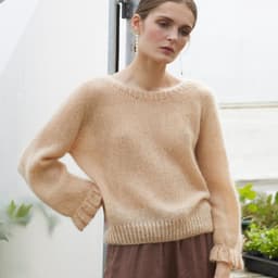 Engklokke-genseren strikkes ovenfra og ned med raglanøkninger. Halsutringningen formes med forkortede p/vendepinner. Genseren har vrangborder med vridde r-masker. Ermene er vide og 3-kvart-lange, og er avsluttet med en dekorativ klokkemønstret rysjekant. Genseren har en normal passform med ca 8 cm bevegelsesvidde.