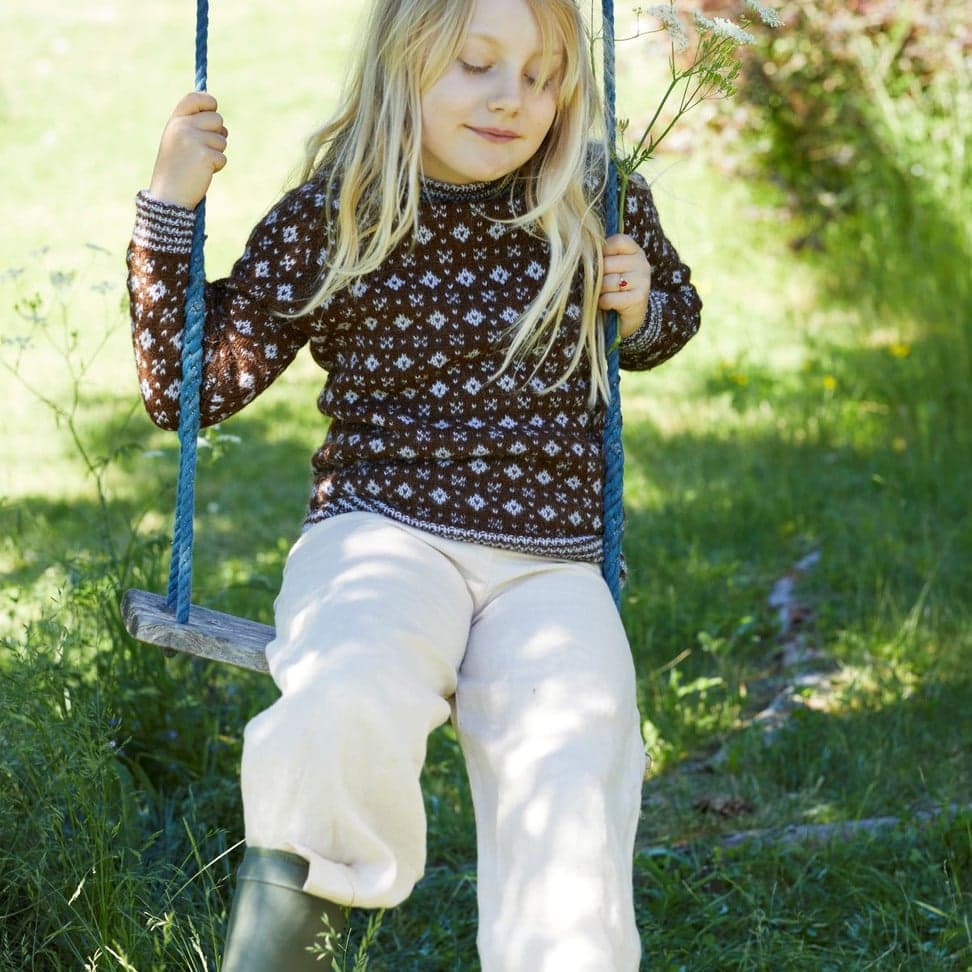 Helmønstret genser, «islendervariant» i to farger. Strikket nedenfra og opp med raglanfelling