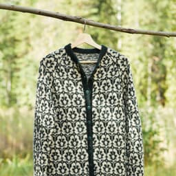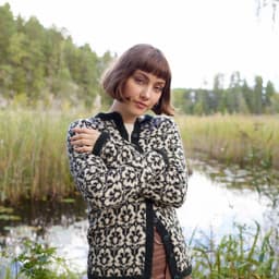 Arnajakken er en helmønstret jakke i to farger , strikket nedenfra og opp. Jakken er strikket rundt og klippet opp foran ved montering. Strikk ermene først. Mål på ermet for å finne hvor i mønsteret du bør starte på bolen – slik at du er på samme sted i mønsterrapporten på både ermene og bolen når du skal strikke delene sammen og begynne med raglan.