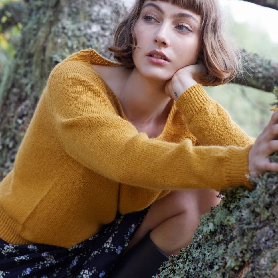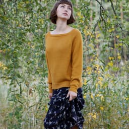 Andreagenseren er en enkel, glattstrikket genser med en vid halsåpning. Den strikkes ovenfra og ned med raglanøkninger.