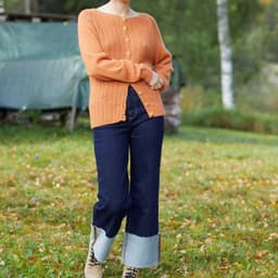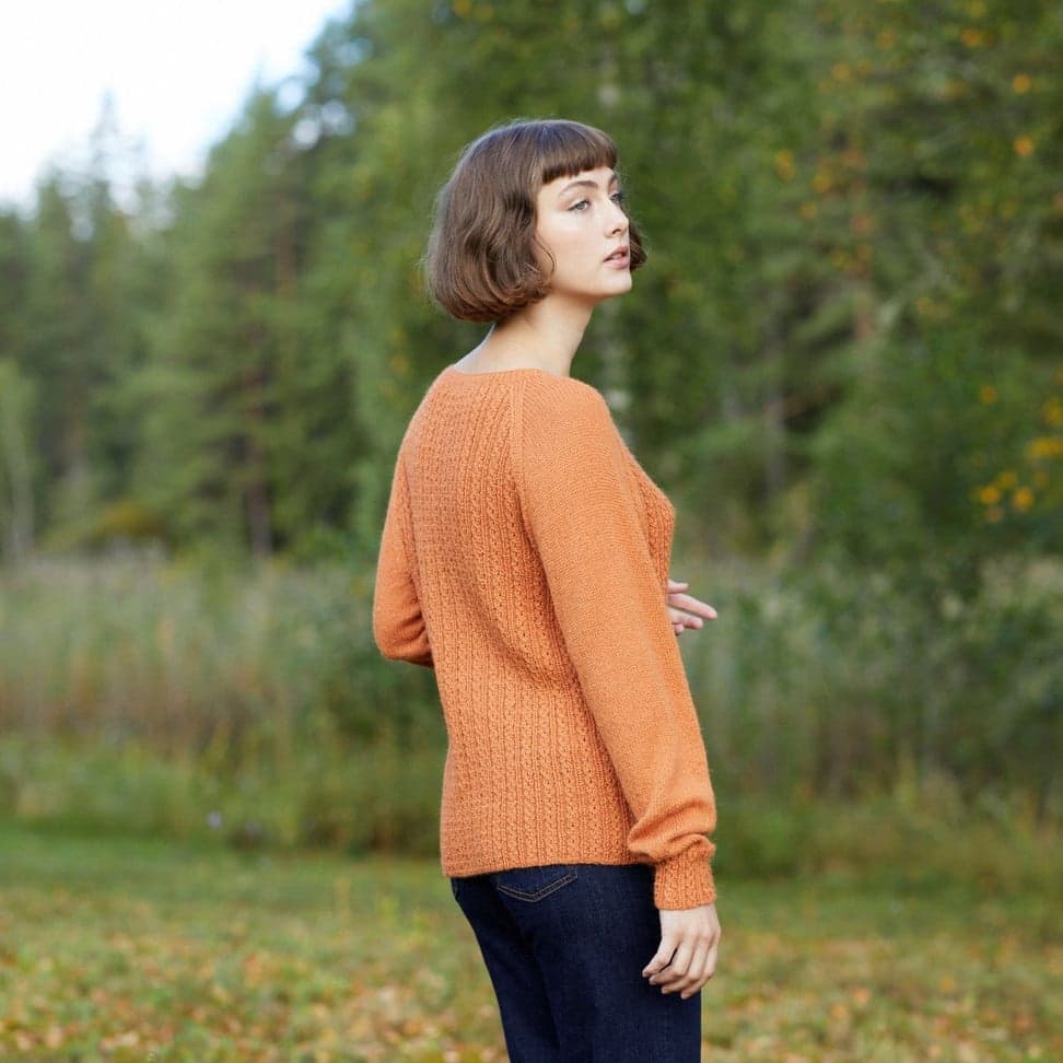 Annejakken strikkes frem og tilbake, nedenfra og opp, med raglanfelling. Den har små fletter på bolen, og ermene strikkes rundt i glattstrikk.