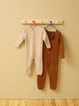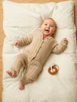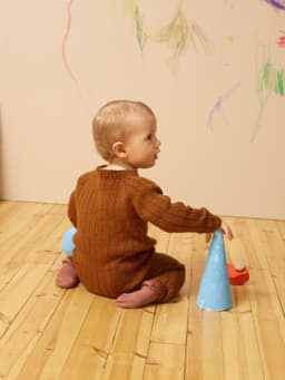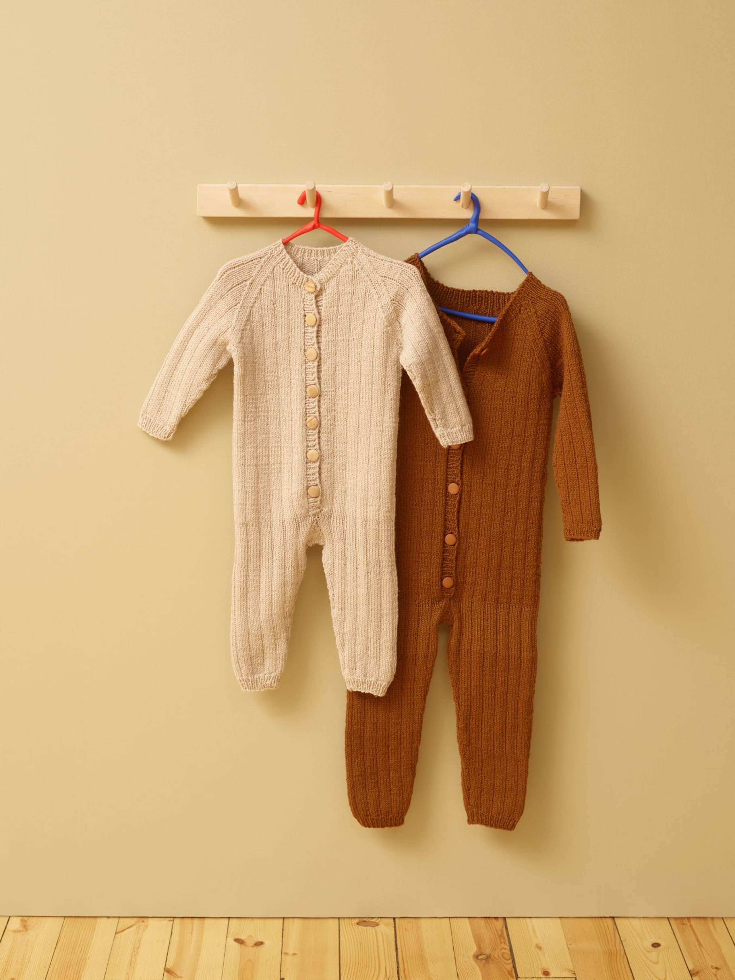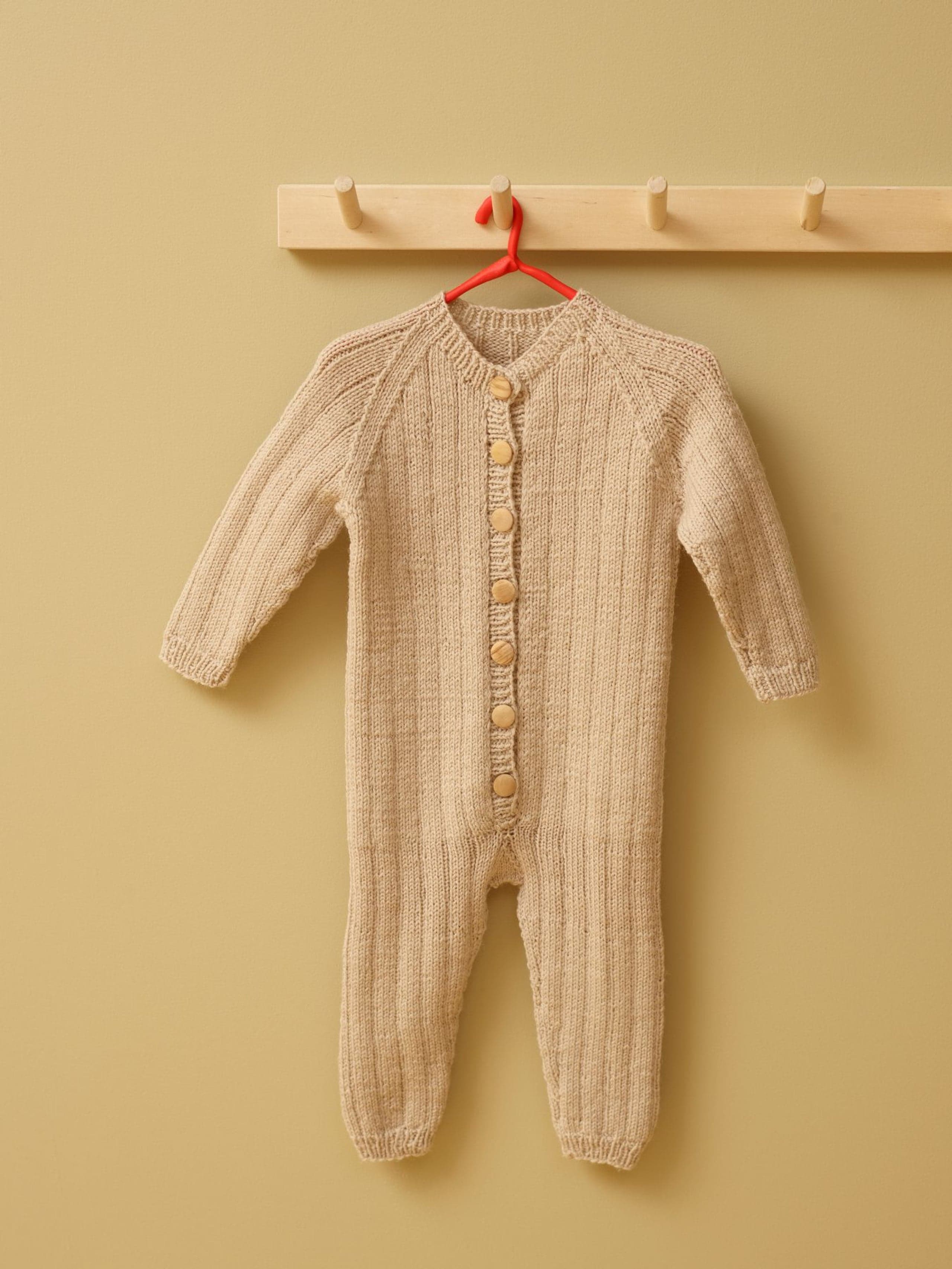 Heldressen strikkes nedenfra og opp, med kile i skrittet og raglanfelling på bærestykket. Dressen har knepping foran, fra halsen til skrittet for lettest mulig påkledning.