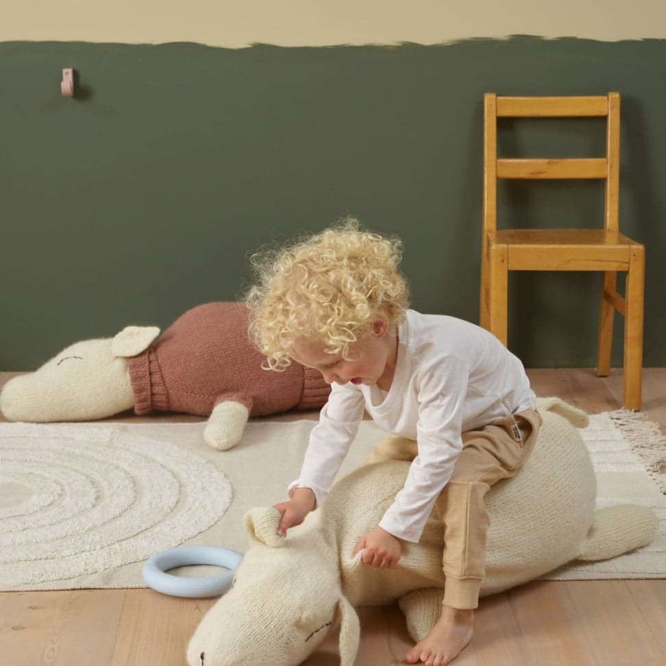 Sauene Bærit og Bærling strikkes fra mule til hale. Først strikkes hodet og kroppen. Så strikker man opp masker til ører, bein og hale, og strikker disse ut fra kroppen. Hele sauen fylles med ullflor. Øyne og snute er brodert på. Teknikkene som benyttes er øking, felling, strikke sammen, strikke opp masker. Sauen kan strikkes m ed eller uten genser. Genseren strikke s i ett med kroppen. Maskene til bakdelen strikkes opp innunder genserens vrangbord. Maskene til halskanten på genseren strikkes opp ved genserens start. Fyll med ca 700 g ullflor eller annet.