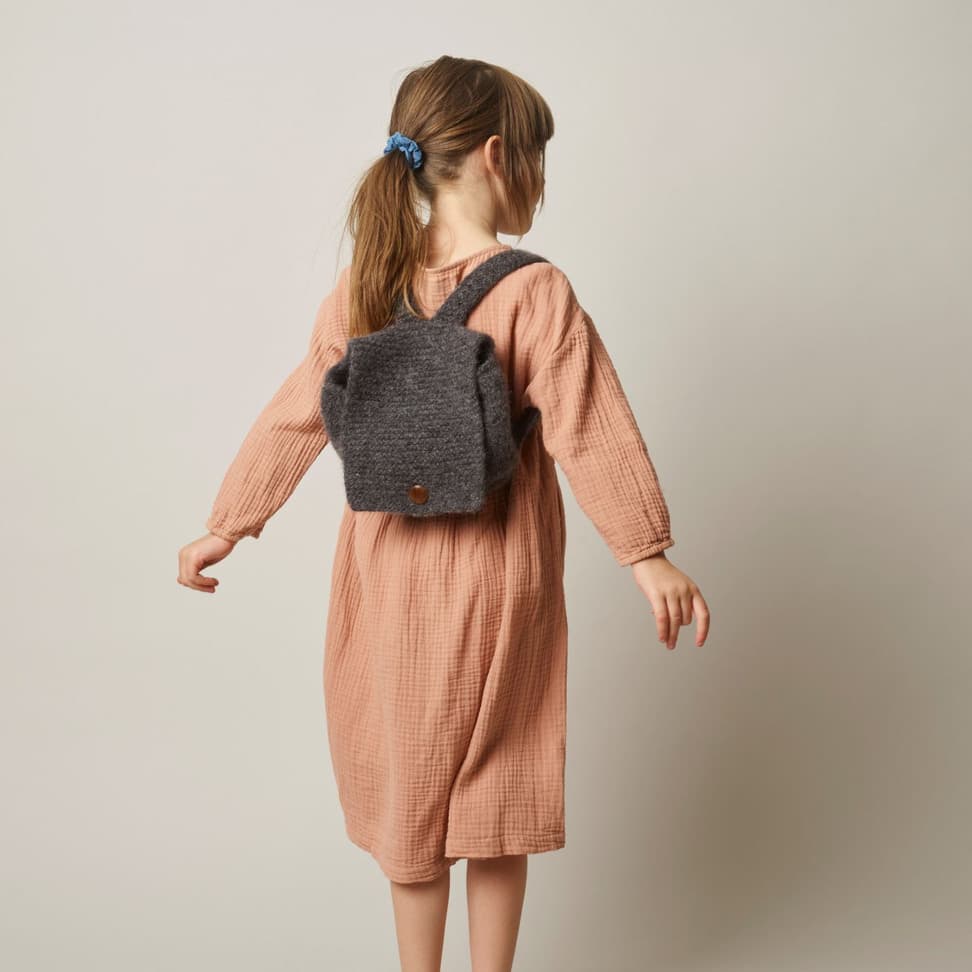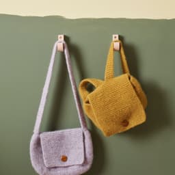 Vesken og ryggsekken er supre til smårollingen. De kan brukes til Bærit og Bærling, eller til andre små skatter. Begge strikkes på samme måte, men velg mellom 1 reim til veske, eller 2 reimer til ryggsekk. De er enkle å strikke for nybegynneren, for her har vi kun brukt rette masker på tykke pinner. Til slutt toves de lett og man kan sy på en fin knapp.