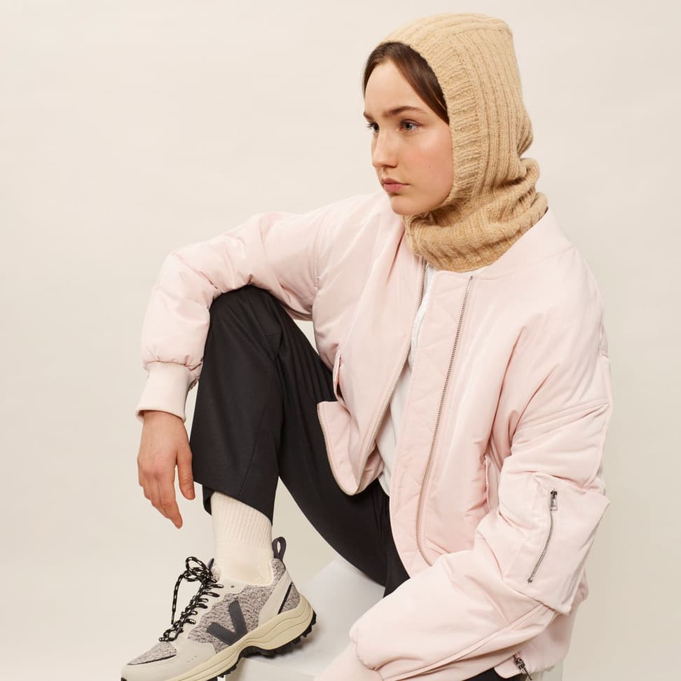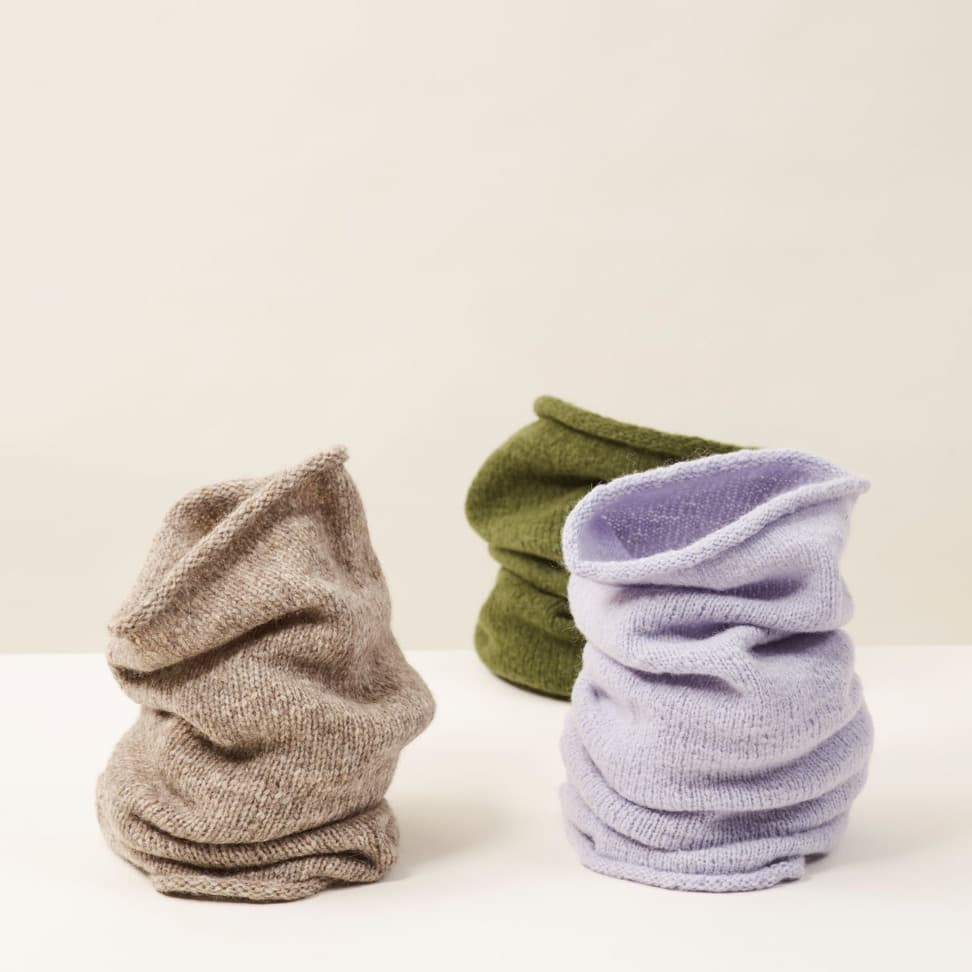 Puno Petit er utgående. Viola balaclava strikkes ovenfra og ned i ribbestrikk. Først strikkes hodestykket, deretter plukkes masker opp langs sidene av hodestykket og så strikkes det frem og tilbake nedover. Det legges opp nye masker under haken og så strikkes halsen rundt. Kanten rundt åpningen plukkes opp til slutt og strikkes rundt i ribbestrikk.