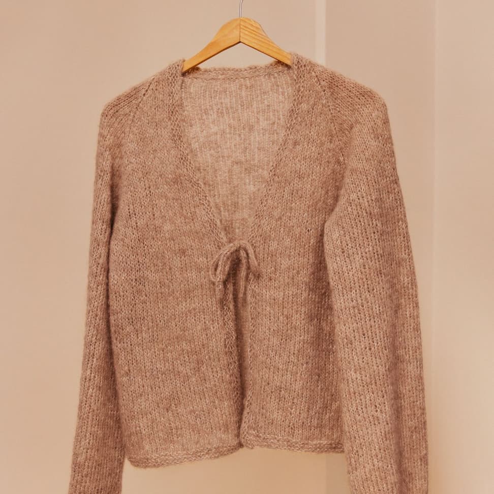 Linelle jakke er en kort glattstrikket raglanjakke med v-hals og knytesnor foran. Jakken har en kroppsnær fasong med trompetermer. Den strikkes nedenfra og opp. Langs hals- og forkant strikkes en smal rillekant, nederkantene er rå. For å få en kroppsnær fasong, velg en størrelse som har en brystvidde som er ca 4-8 cm større enn din egen.