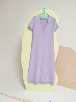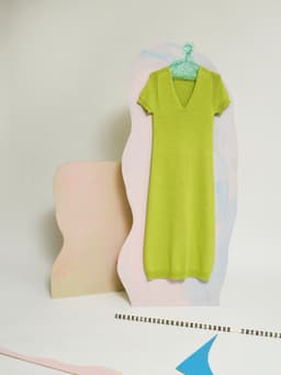 Laang sommerkjole er en lang, glattstrikket kjole med dyp v-halsringning og korte ermer. Kjolen strikkes ovenfra og ned. Den har en elegant skulderøkning: Først økes det til bolen på hver side av 10 skulder-m, så økes det til ermer, og til slutt økes det til både bol og ermer samtidig – som til en raglan. Samtidig økes det til v-hals. Kjolen er tettsittende over bysten, og skråner ut fra livet. Siden kjolen strikkes ovenfra, kan lengden enkelt tilpasses egen kropp. Prøv gjerne kjolen på underveis og strikk den så lang som du selv liker den. Det er også mulig å tilpasse bredden i skjørtet ved å øke hyppigere/sjeldnere. Nederkantene på skjørt og ermer strikkes i ribbestrikk. I utringningen plukkes masker opp til slutt og kanten strikkes som en I-cord. Velg en størrelse som har en brystvidde som er omtrent like stor som din egen.