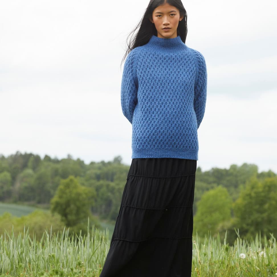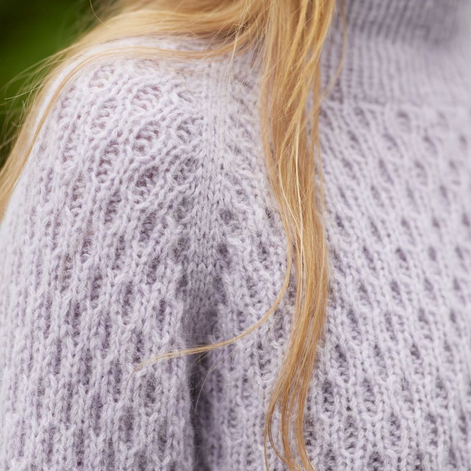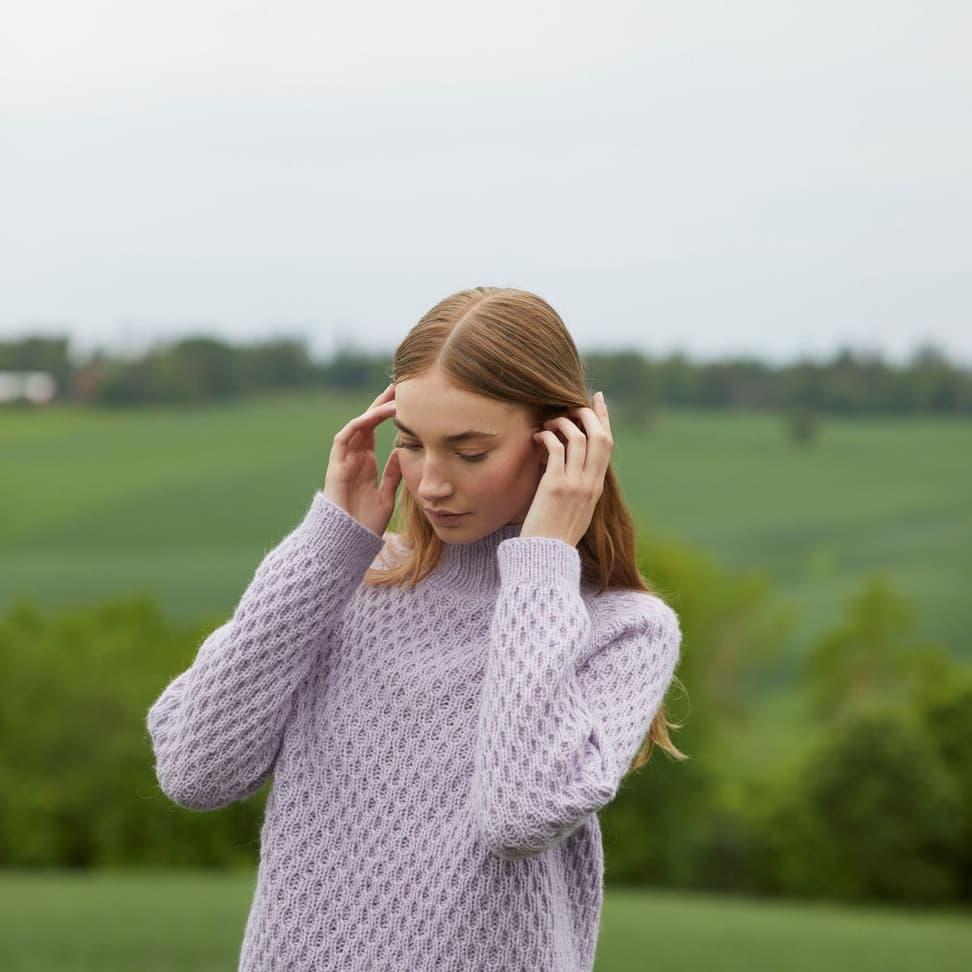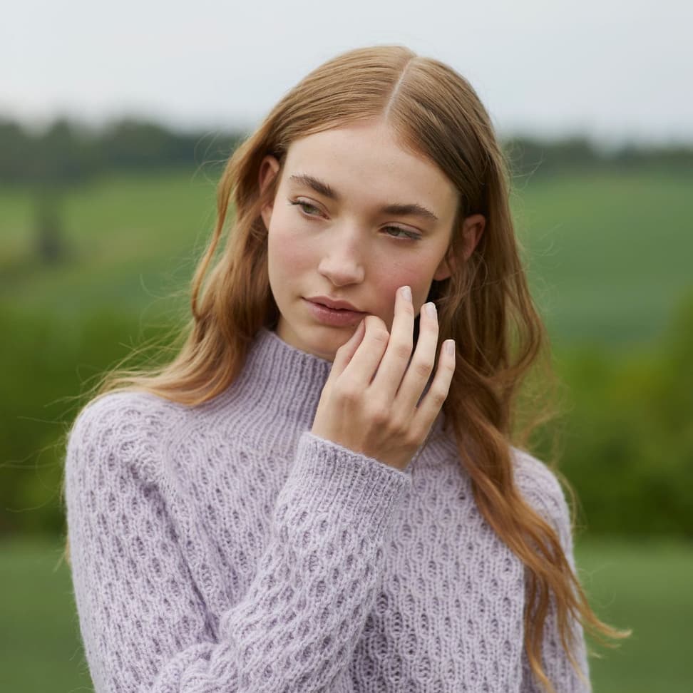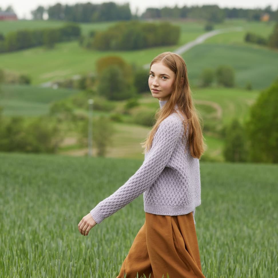 Dilon strukturgenser er en raglangenser i flettestruktur, med halvhøy hals og ribbestrikkede kanter. Den har en klassisk passform og finnes i kort og lang versjon.Genseren strikkes ovenfra og ned med 1 tråd Finull og 1 tråd Alpaca Silk. Halsringningen formes ved å strikke vendepinner, og det økes til raglan på hver side av 3 glattstrikkede m. For å få en avslappet passform, velg en størrelse som har en brystvidde som er 10- 16 cm større enn din egen.