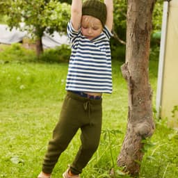 Trollheggbuksen er en behagelig og praktisk bukse i glattstrikk. Den har smale ben og løpegang med strikket snor i livet. Buksen strikkes ovenfra og ned, benlengden kan derfor lett justeres etter ønske.