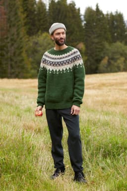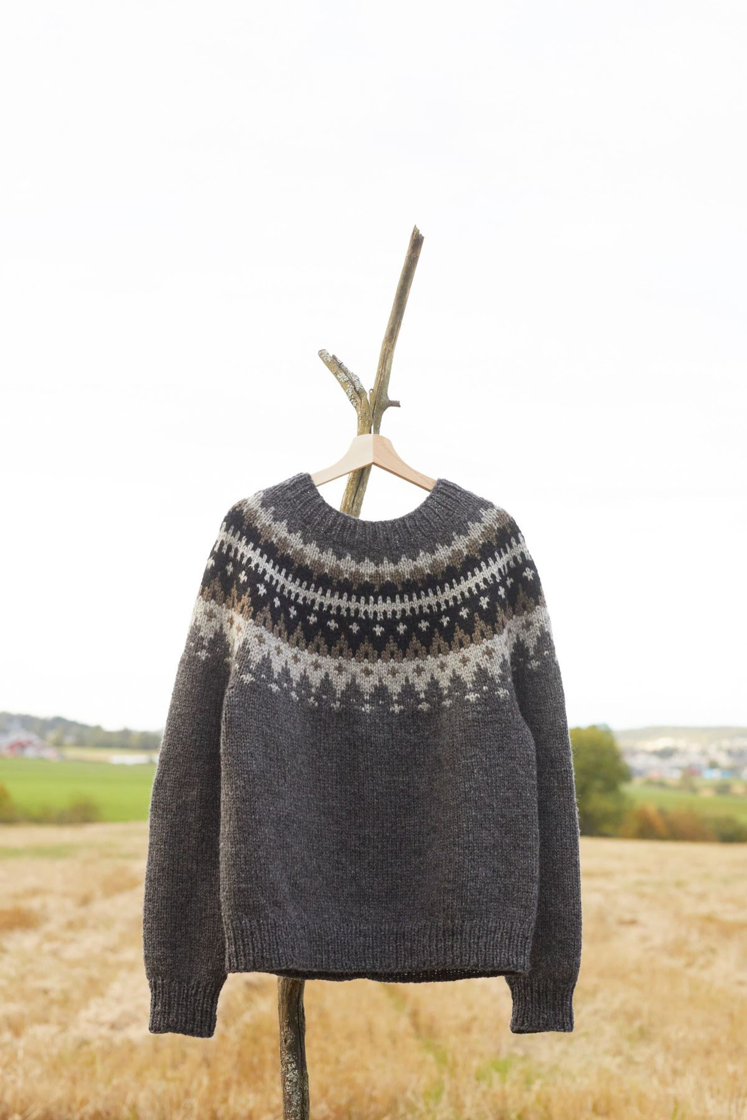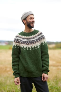 Vardegenseren er en klassisk genser med rundt mønstret bærestykke. Genseren har en rett og avslappet passform med ribbestrikkede kanter. Den strikkes ovenfra og ned, med vendepinner i halsen. Mønsteret har én bunnfarge og tre mønsterfarger, men det er kun to farger per omg. Tips! Mange strikker mønster fastere enn glattstrikk, sjekk om du er en av dem som bør gå opp i pinnestørrelse når du strikker mønsterstrikk. For å få en avslappet passform, strikk en størrelse som har en brystvidde som er 12-16 cm større enn din egen.