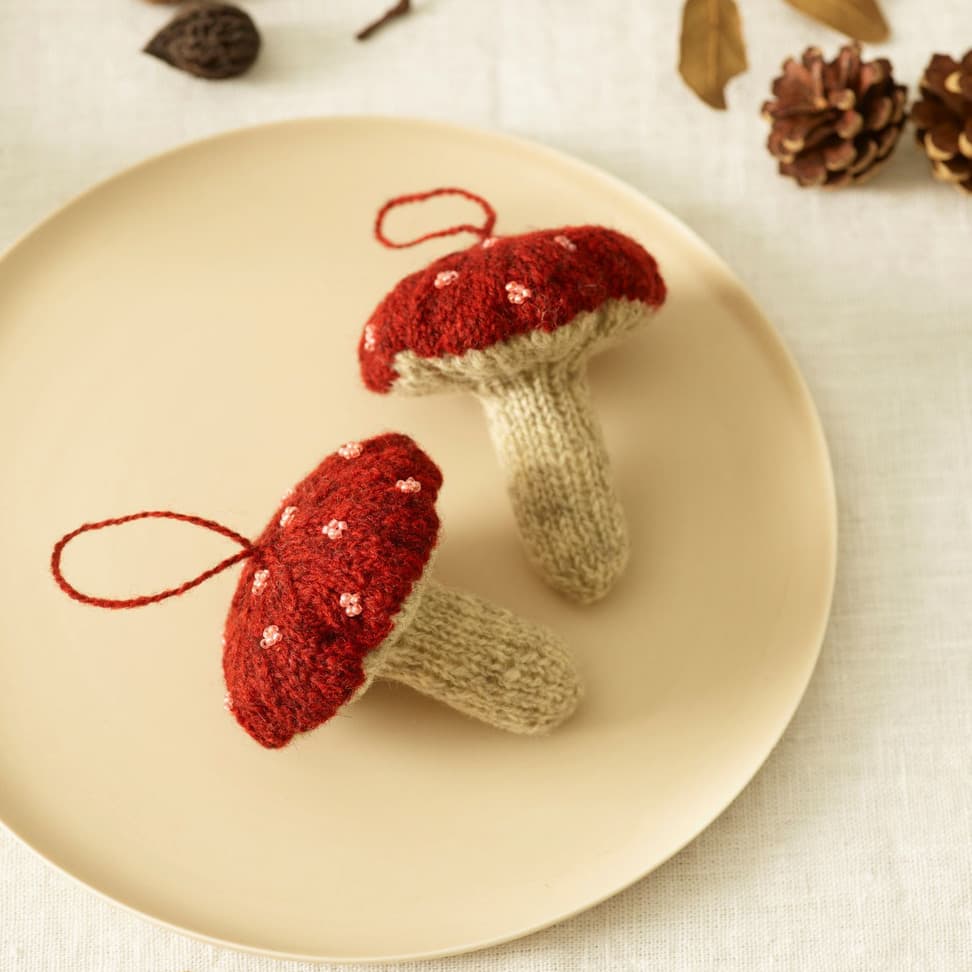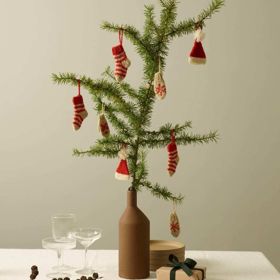 Sukkerstangen er søt julepynt til å henge på juletreet, eller kanskje på en gave. Den strikkes rundt, fra bunnen til toppen. Den buede formen strikkes med vendepinner. Stripene er brodert på til slutt. Sukkerstangen fylles med ullflor.