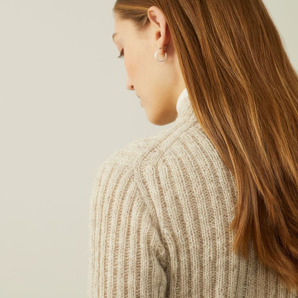 Trane er en ribbestrikket genser som strikkes ovenfra og ned. Først strikkes bakstykket frem og tilbake mens det økes til skrå skuldre. Deretter strikkes masker opp langs skuldrene og hvert forstykke strikkes for seg med økinger til hals. Det legges opp m midt foran og forstykkene strikkes så videre samlet. Under ermene samles maskene på samme pinne, bolen strikkes rundt og avsluttes med vrangbord. Det plukkes opp m til ermer og disse strikkes først frem og tilbake med vendepinner for å forme ermetoppen, og deretter rundt. Halskanten strikkes til slutt.