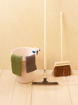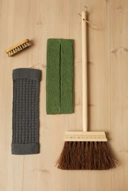 Moppekluten har lommer til å tre på moppestativ. Her kan det velges mellom to ulike kluter. Begge strikkes med dobbel tråd. Den ene strikkes frem og tilbake i riller på langs. Den andre strikkes frem og tilbake i strukturmønster på tvers og lommen strikkes i rillestrikk. Begge klutene passer til moppestativ på 40 cm bredde.