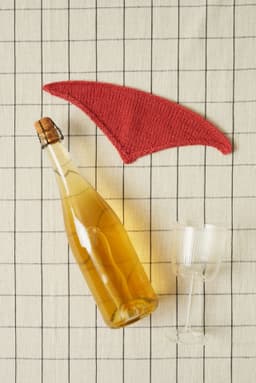 Servietten strikkes frem og tilbake i glattstrikk. Det felles i kanten på hver side til en spiss.