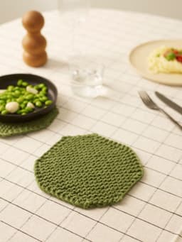 Bordskåneren har form som en 6-kant. Den formes ved å øke og felle i hver side. Den strikkes frem og tilbake i rillestrikk, med 4 tråder. Den kan også brukes som gryteklut.