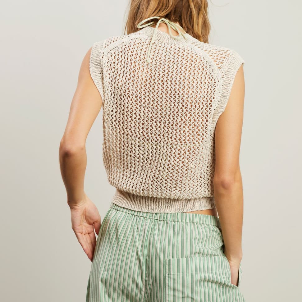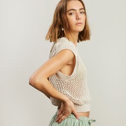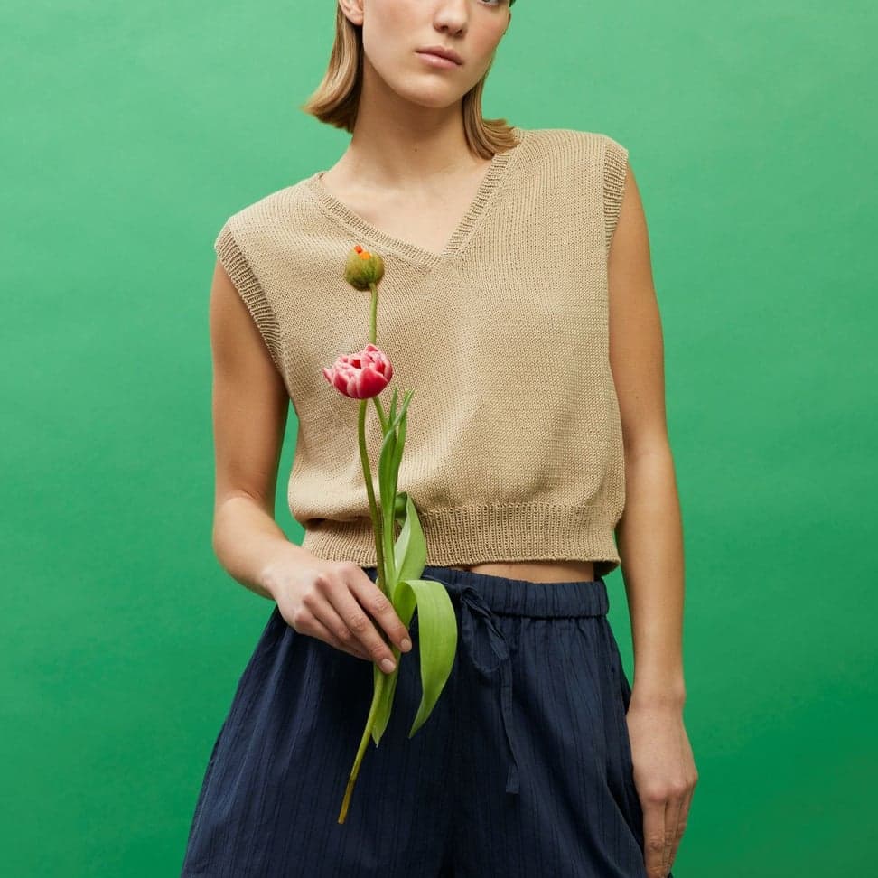 Pileavest er en hullstrikket vest med en litt løs og kort passform, rund hals og ribbestrikkede kanter. Vesten strikkes ovenfra og ned. Først strikkes bakstykket frem og tilbake og det økes til skrå skuldre. Deretter strikkes masker opp langs skuldrene og hvert forstykke strikkes for seg med økinger til hals. Det legges opp masker midt foran og forstykkene strikkes sammen. Under ermene samles maskene på samme pinne, bolen strikkes rundt og avsluttes med vrangbord. Det strikkes opp m rundt ermehullene og halsen og det avsluttes med vrangbord. For å få en løs passform, velg en størrelse som har en brystvidde som er 8-15 cm større enn din egen.