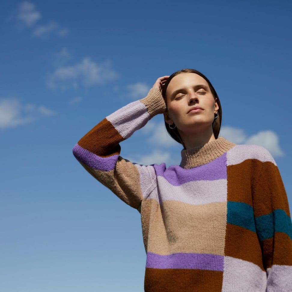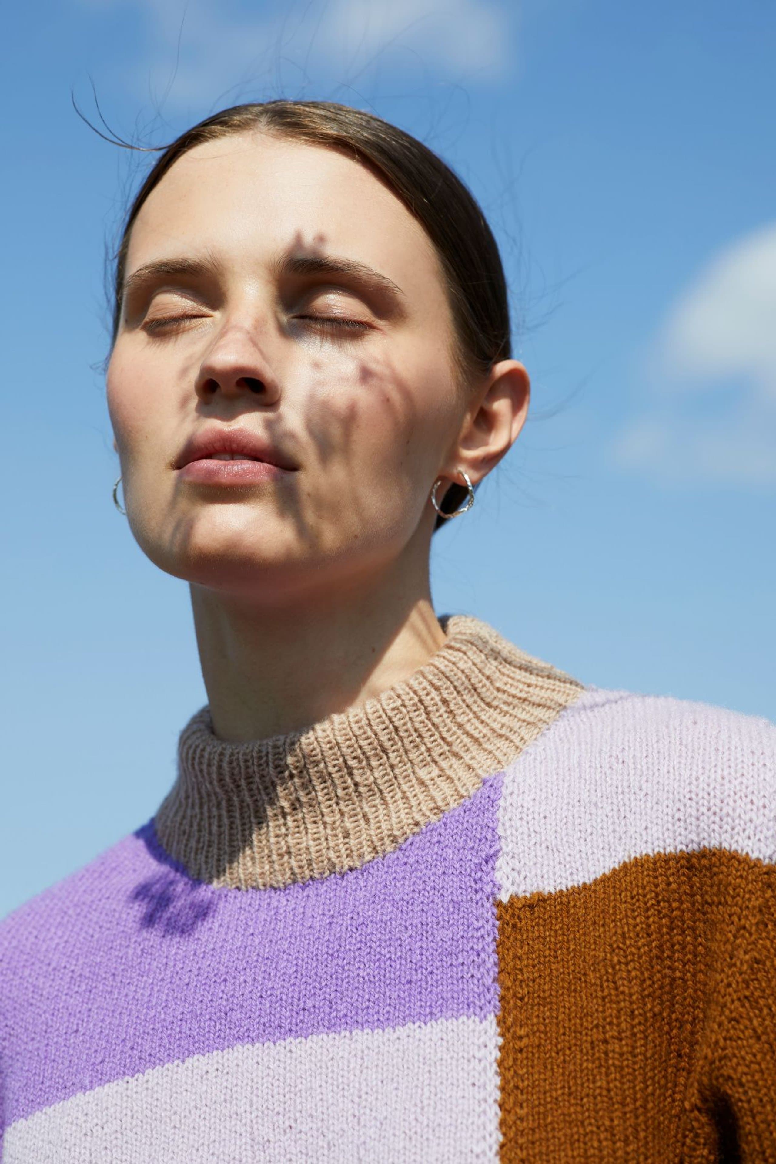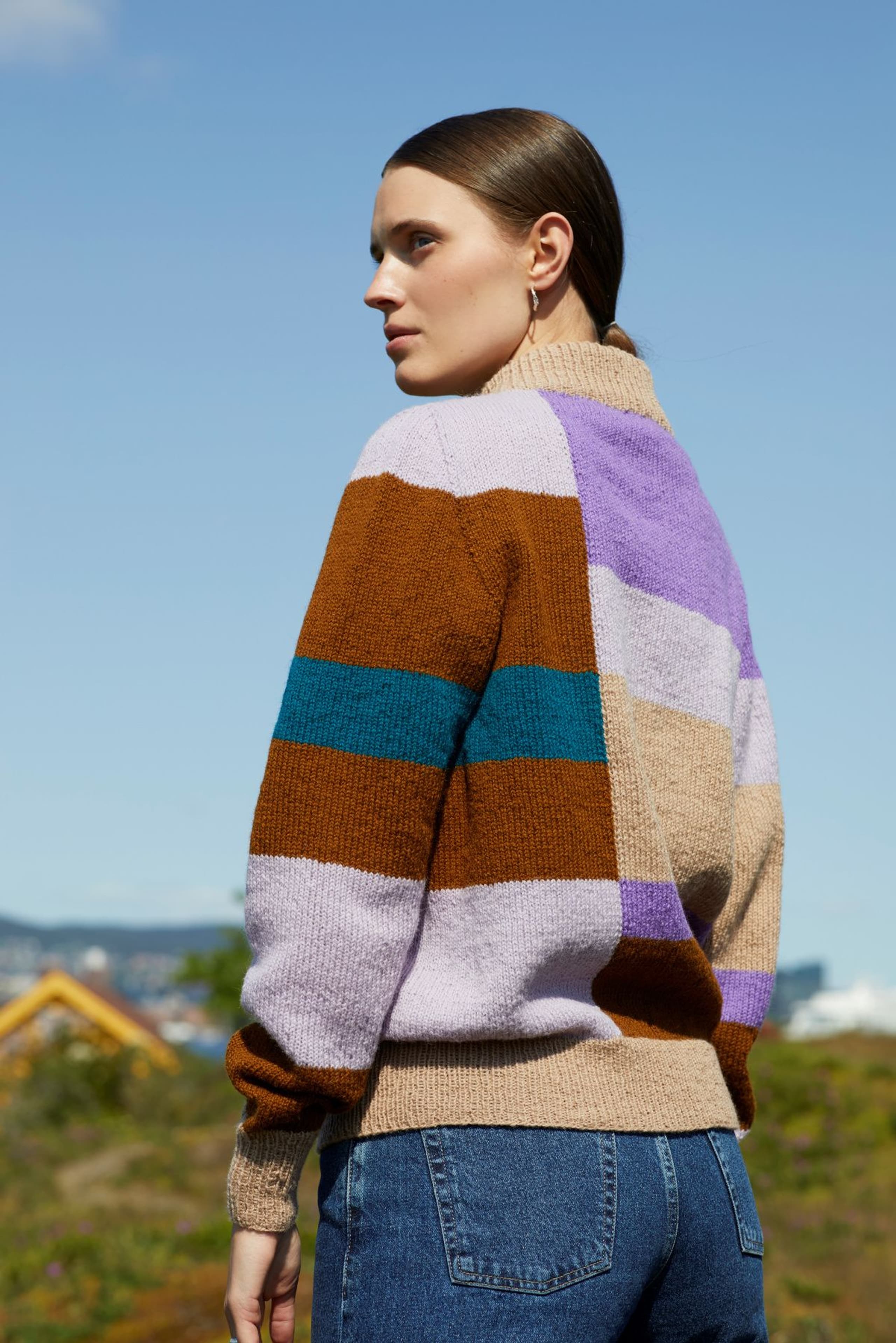 Denne genseren strikkes i et rutete mønster i glattstrikk, med teknikken intarsia. Dette er en teknikk som kan brukes på flerfargestrikk med store fargeflater, uten at det blir lange trådsprang på baksiden. Genseren strikkes i glattstrikk nedenfra og opp. Bol og ermer strikkes først hver for seg. Bolen strikkes frem og tilbake i intarsiateknikk – den heftes sammen i siden mens man strikker, slik at man slipper å sy sammen genseren til slutt - dette gjør man ved å snurre trådene rundt hverandre. Ermene strikkes rundt på vanlig måte. Under ermene settes ermer og bol inn på samme pinne og det strikkes videre frem og tilbake i intarsiateknikk. Først felles det som til raglan på vanlig måte, deretter feller man kun ermemaskene, mens bol strikkes rett opp. Så strikker man de siste ermemaskene sammen med bol, og strikker skrå skulder. Skuldermaskene syr man sammen. Til slutt strikkes det opp m rundt halsen og det strikkes halskant. For å få en klassisk passform, strikk en størrelse som er 8-12 cm større enn brystvidden din.