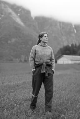 Strikket nedenfra og opp Islender til dame er en helmønstret raglangenser strikket i det klassiske islender-mønsteret. Genseren har en kort, rett og avslappet fasong med rund hals. Den strikkes nedenfra og opp. Først strikkes vrangbord med striper, før man strikker mønster på bolen. Ermene strikkes inn på samme måte, før delene settes på samme pinne og strikkes sammen. Mellom raglanfellingene strikkes en liten mønsterbord. For en avslappet passform velg en størrelse som er 14-22 cm større enn din egen brystvidde.