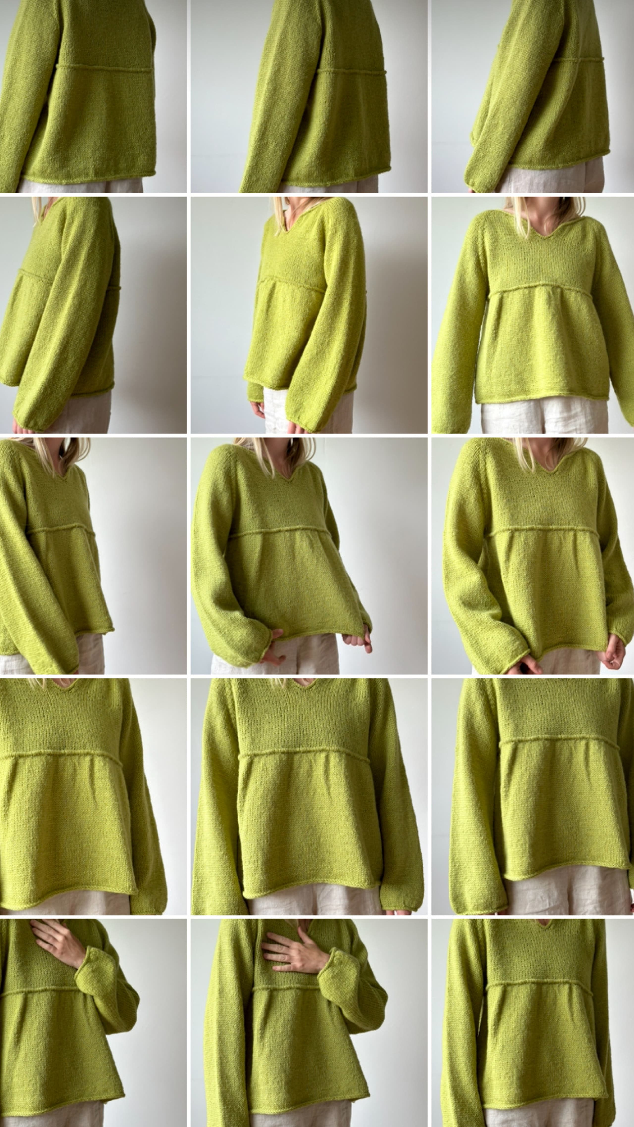 Blusen strikkes ovenfra og ned med en tilpasset raglanøkning med en liten splitt foran. Den strikkes med litt overvidde over brystet og har mer bevegelsesvidde over magen. Blusen har også romslige ermer. Alle kanter avsluttes med i-cordavfelling. Bakgrunnen for Spireblusen var å lage et plagg som Enya Ødegaard selv skulle ønske hun hadde i garderoben som gravid og i tiden som fulgte. «Jeg har i flere år tenkt at jeg vil lage et tidløst og feminint plagg som passer til kroppen gjennom flere av livets kapitler. Et plagg for en kropp i forandring der ingenting føles behagelig nok.»
