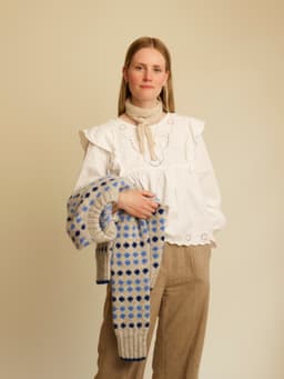 Skogsbærgenseren strikkes ovenfra og ned i glattstrikk med mønster etter diagram. Først strikkes bakstykket frem og tilbake. Deretter plukkes det opp masker langs skuldrene til høyre og venstre forstykke. Forstykket strikkes frem og tilbake, før arbeidet samles til bol som strikkes videre rundt. Det plukkes opp masker til ermer og hals. Genseren er monteringsfri. Til Fremstrikk har Tonje Hodne designet Skogsbærgenser. Inspirasjonen til genseren er hentet fra barndommen. Tonje har vokst opp med båt, og familien dro ofte på båttur om sommeren. «Jeg ser for meg at vi kommer til en holme hvor det er skog og det kryr av blåbær. Solen står høyt på himmelen, det lukter solkrem og sjø. Det er en barnlig glede og spenning i luften, og et hav av små, runde, blå bær.» Denne oppskriften er på dansk.