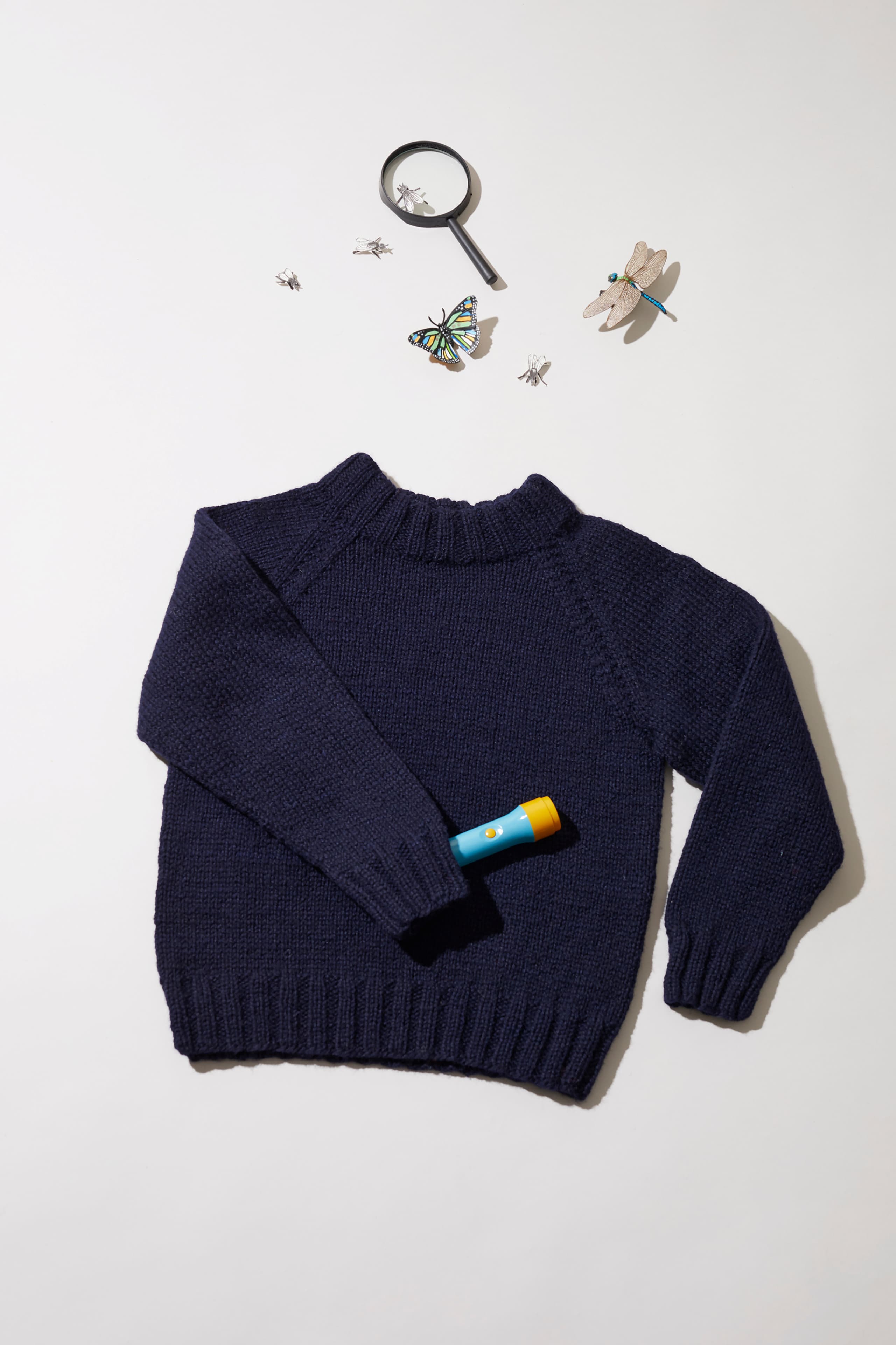 Kikkigenser er en glattstrikket enkel raglangenser, som strikkes nedenfra og opp. Genseren har en avslappet passform, rund hals og vrangborder i 2x2 ribb. Arbeidet starter nederst på bolen strikkes rundt opp til ermehullet. Videre strikkes ermene hver for seg, også nedenfra og opp. Så settes delene sammen, og det strikkes rundt over bærestykket, samtidig som det felles til raglan på hver side av fire raglanmasker. Halsringningen formes ved å strikke vendepinner, frem og tilbake. Til slutt strikkes halsen i vrangbord og brettes dobbel innover og sys fast med løse sting
