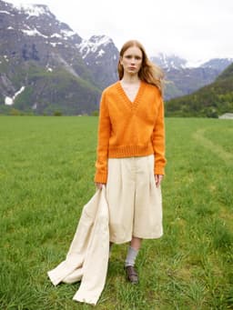 Maiagenseren er en glattstrikket raglangenser med dyp vhals, som strikkes ovenfra og ned. Genseren har en ledig fasong og kanter i 2x2 ribb. Maiagenseren strikkes med én tråd Mitu sammen med én tråd Plum. Arbeidet starter i nakken og det strikkes frem og tilbake, samtidig som det økes til raglan ved hvert raglanmerke og til v-hals i forkantene. Når raglan og v-hals er ferdige, strikkes ermene og bolen rundt hver for seg og avsluttes med kanter i ribbestrikk. Til slutt strikkes masker opp til halskanten som strikkes i ribbestrikk med fellinger midt foran.