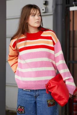 Uni stripegenser er en glattstrikket stripegenser med European shoulder (skrå skuldre bak), som strikkes ovenfra og ned. Den har en ledig passform, rund hals og kanter i 1x1 ribb. Uni stripegenser kan strikkes i forskjellige stripemønster. Velg mellom stripemønster A, B, C eller ABC som er en kombinasjon av alle tre. Du får tilgang til alle kombinasjonene og oppskriftene i denne oppskriften.