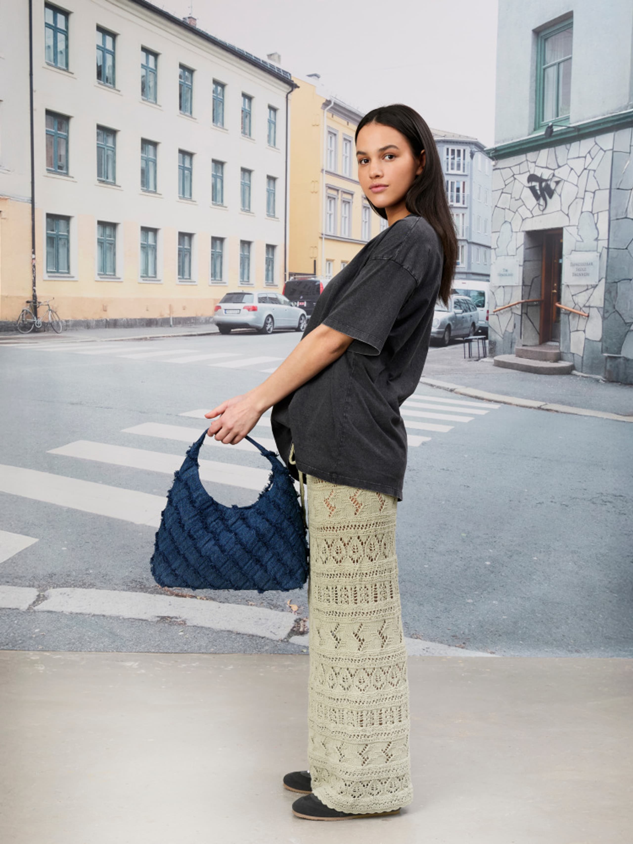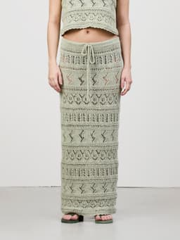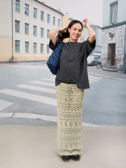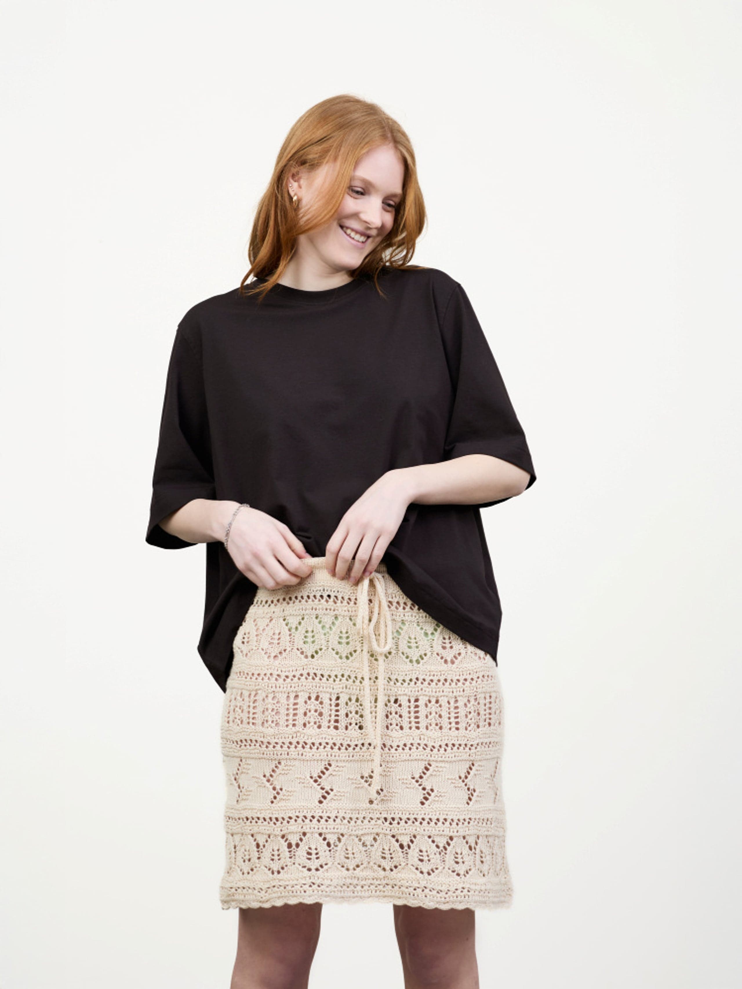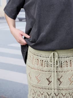 Løkkaskjørtet er et sommerlig blondeskjørt med hullmønster i border. Det er langt eller kort, har knytesnor i livet og heklet nederkant, noe som gir skjørtet en elegant finnish. Skjørtet strikkes rundt, nedenfra og opp etter diagram i Pandora, laget av 100% bomull.