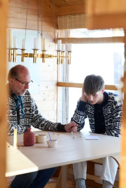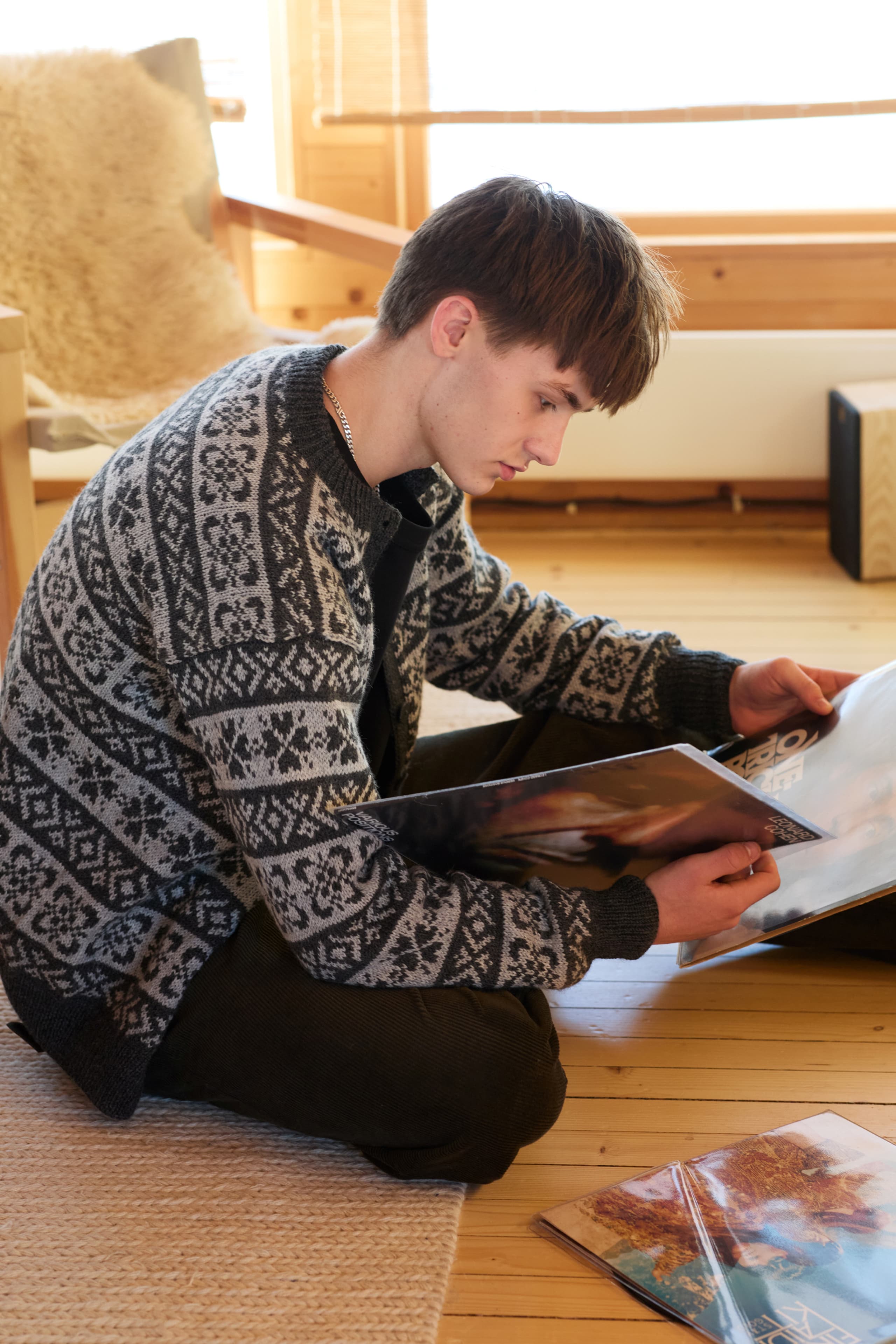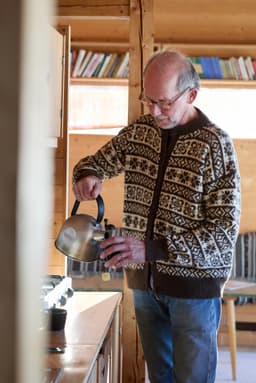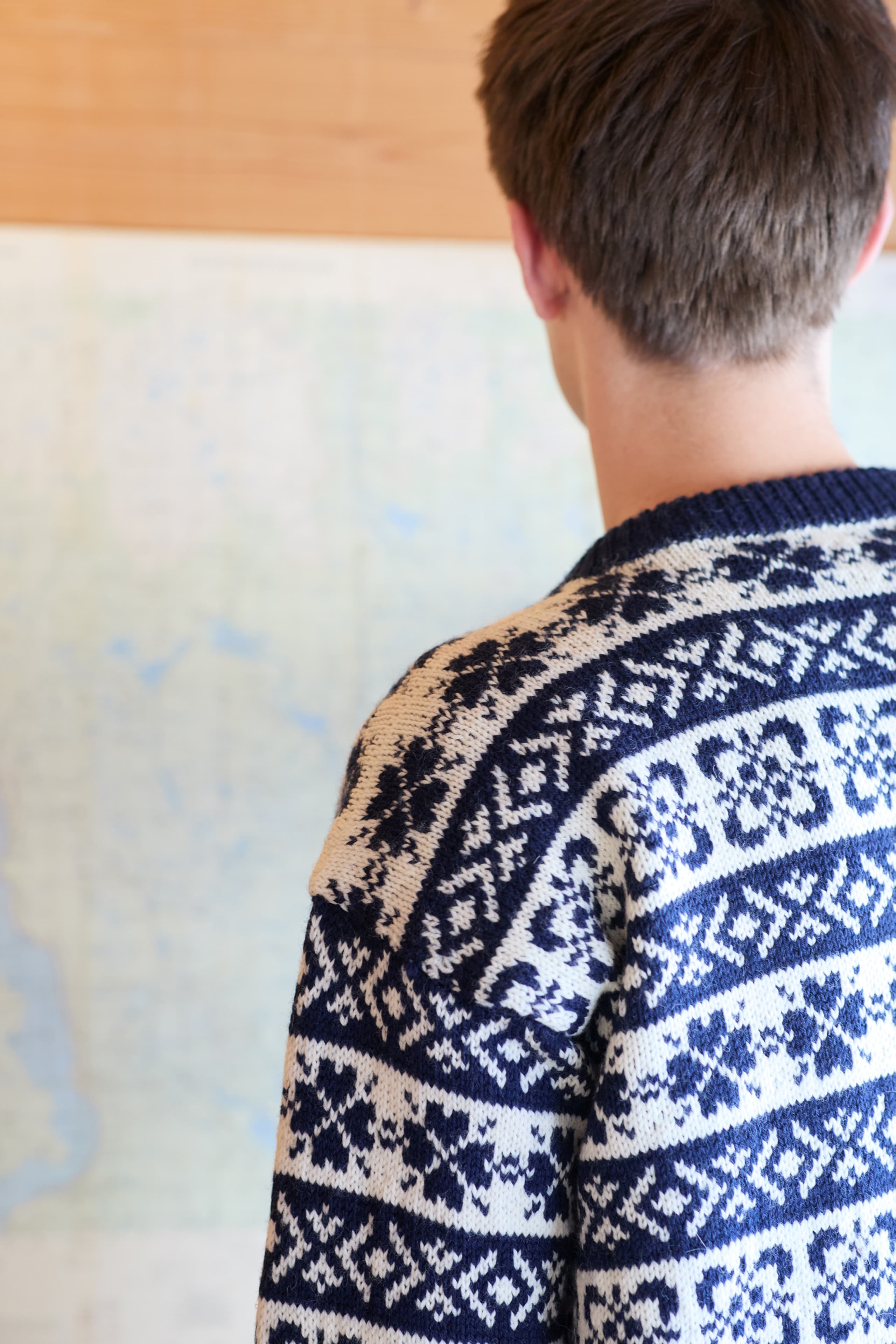 Hyttekofta er en klassisk mønstret jakke i tradisjonell stil, strikket i Pt5, et slitesterkt og maskinvaskbart garn i ull og nylon. Jakken strikkes nedenfra og opp med påsydd stolpe og oppklipp i midten. Mønsteret er bygget opp av border inspirert av gamle kofter, og passer til hele familien. Perfekt til skjermfrie hyttehelger, lesestunder og turopplevelser i frisk luft.