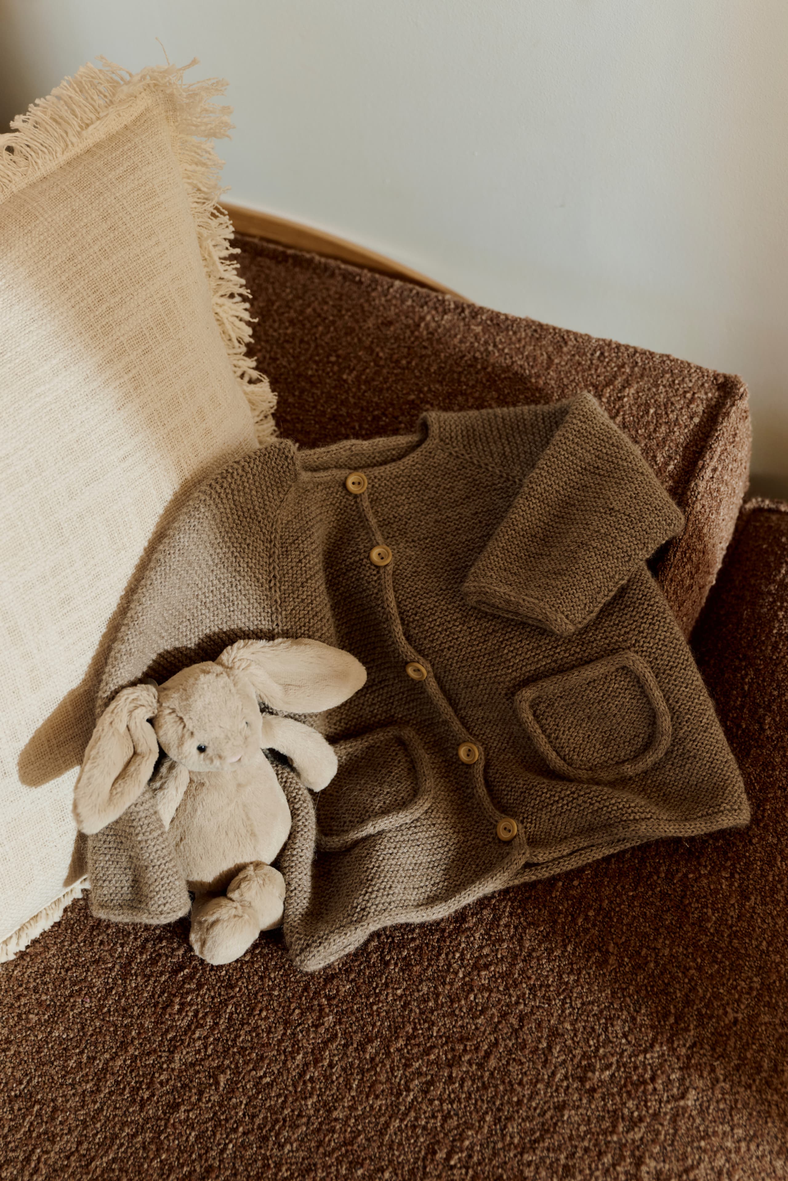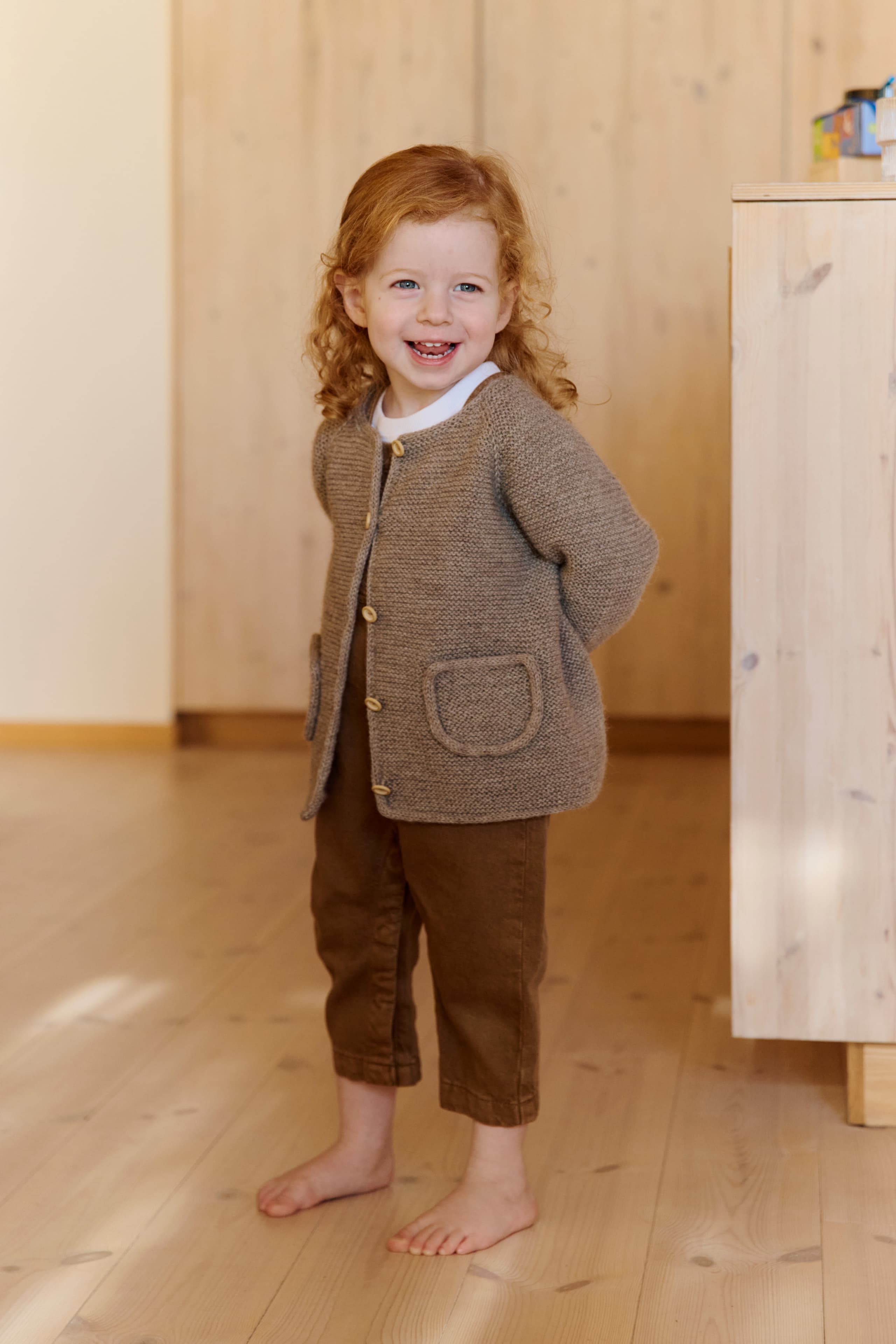 En lun og praktisk jakke med lommer og i-cord-kanter som passer godt for aktive barn! Bompijakken strikkes ovenfra og ned i Tumi, med raglanøkninger og rillestrikk som gir et mykt, fleksibelt plagg. Tumi er et garn som har ullens varme og alpakkaens mykhet, og egner seg godt til barn. Den romslige passformen gir god bevegelsesfrihet, og detaljene løfter uttrykket. En favoritt i hverdagsgarderoben!