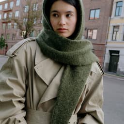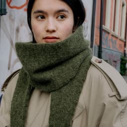 Huva är en varm och trevlig balaclava som stickas i Lamull och Plum. De har en smart och annorlunda konstruktion som gör den spännande att sticka. Den stickas nedifrån och upp i slätstickning och består av två lager som har den slätstickade ytan på både in- och utsidan. Arbetet börjar vid halsen som stickas runt. Det stickas in en hjälptråd där huvan ska plockas upp och man forsätter sticka halsen innan maskorna avmaskas. För att säkra maskorna runt hjälptråden sätts de på strumpstickor innan tråden dras ut. Huvan stickas runt, med ökningar i början av varvet och minskningar i slutet av varvet för att få önskad form. Toppen sys ihop med maskstygn och huvan vänds för att den ska bli dubbel. Avmaskningskanterna på halsen läggs mot varandra och sys ihop med maskstygn.