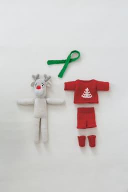 Rudolf er heklet i Pandora. Klærne er strikket i Petunia.